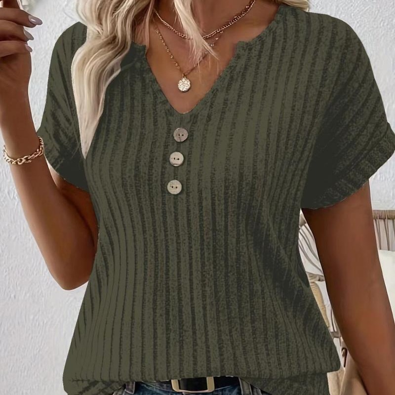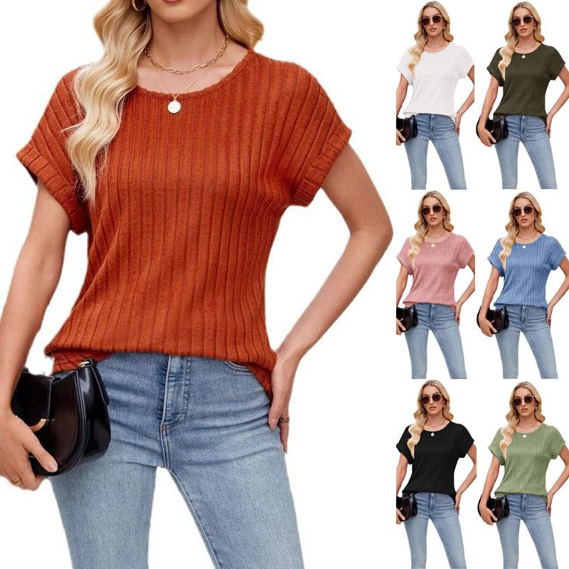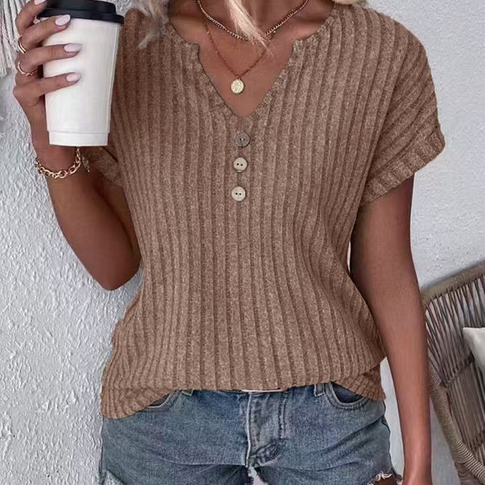 유럽과 미국 패션 다용도 구덩이 기사 반팔 티셔츠 여성 2026 여름 새로운 단추 V넥 니트 풀오버 셔츠 여성