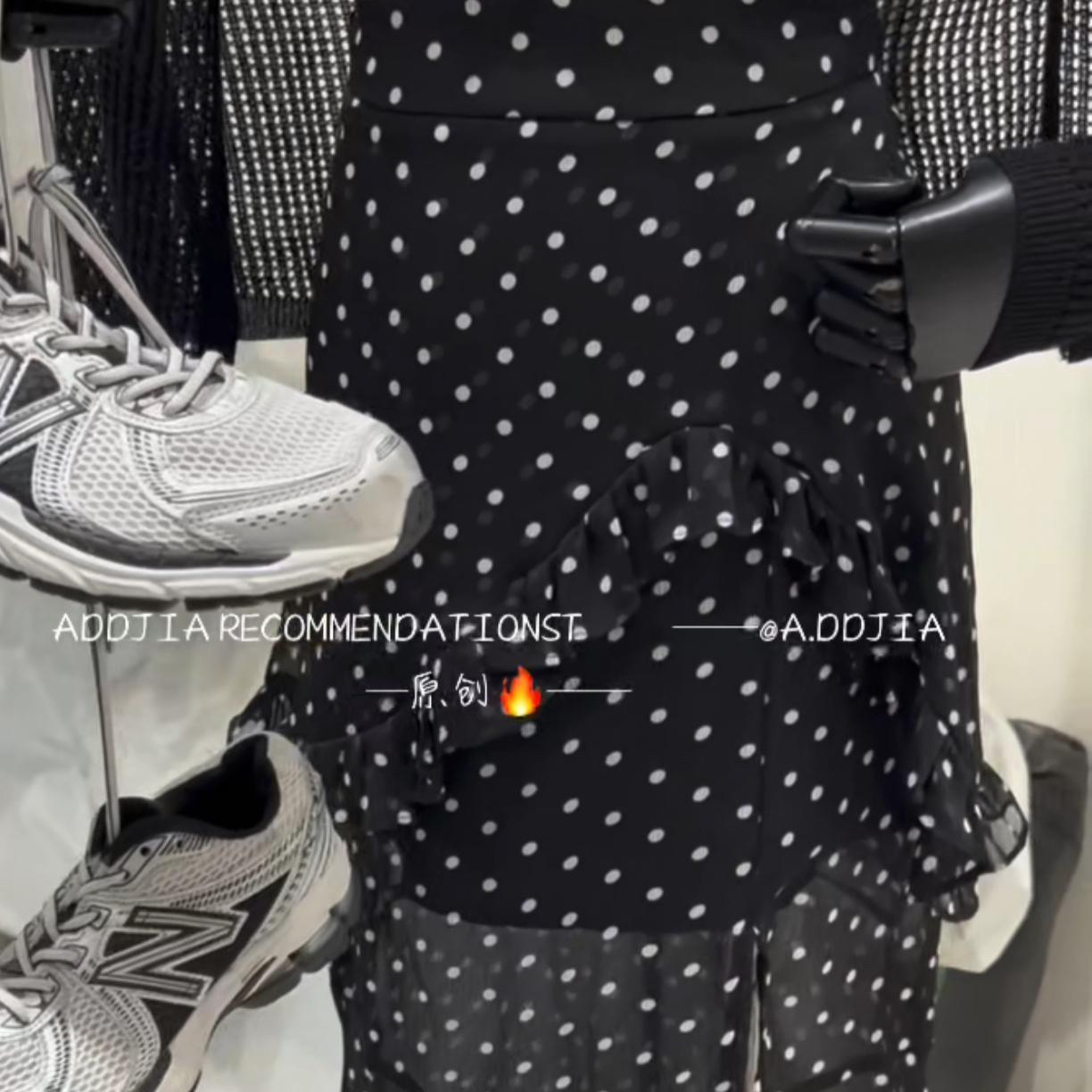 도트 무늬 거즈 스커트 반신 스커트