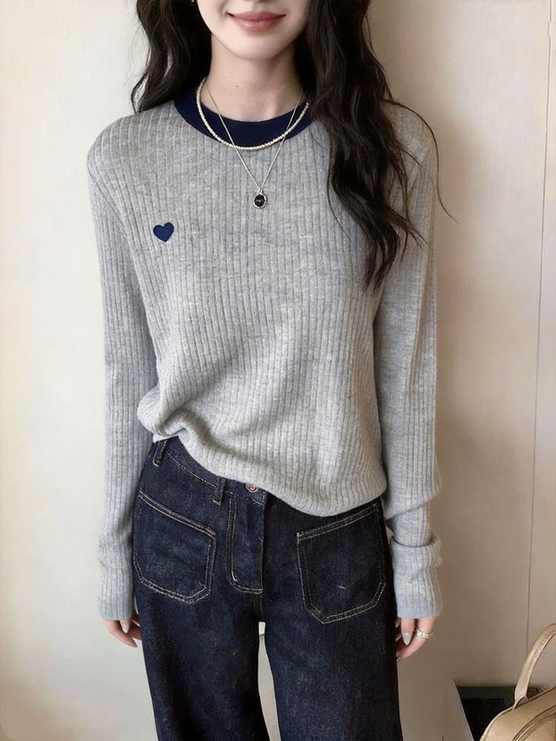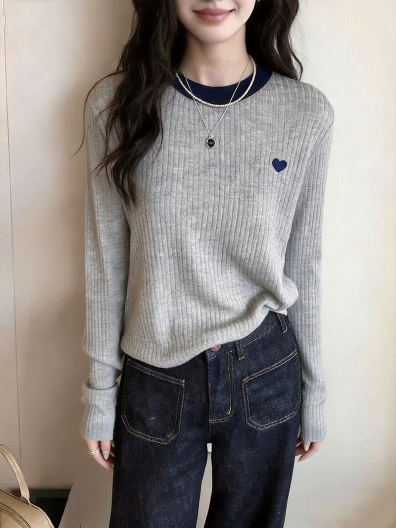 해군 스트라이프 패치워크 페이크 레이어드 긴팔 니트 스웨터 여성 2026 봄 새로운 슬림해 보이는 다용도 품격 맨위