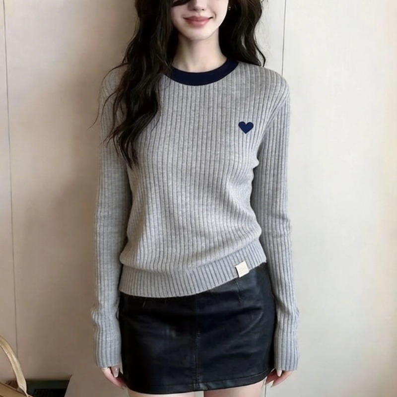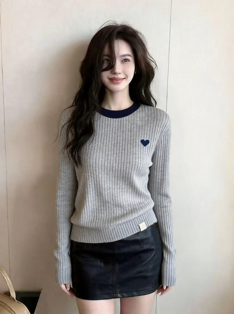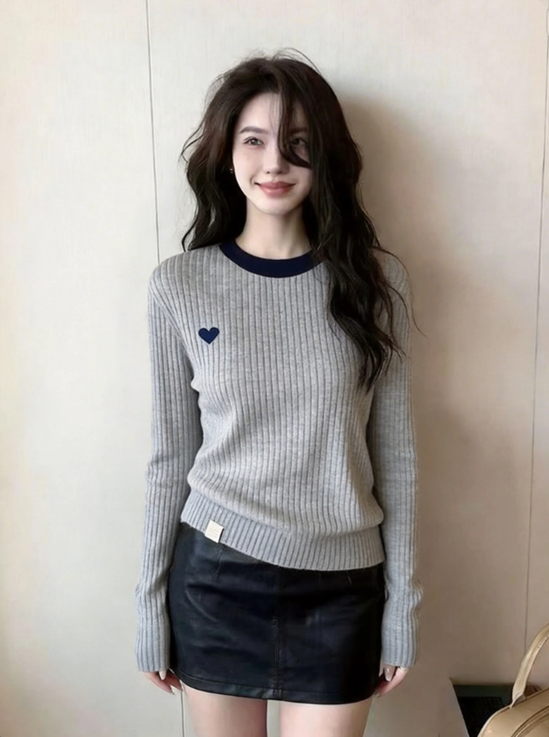 2026 봄 새로운 블루 색상 보석 품격 라운드 넥 반팔 니트 스웨터 여성 몸매 가꾸기 맨위 슬림해 보이는 품격