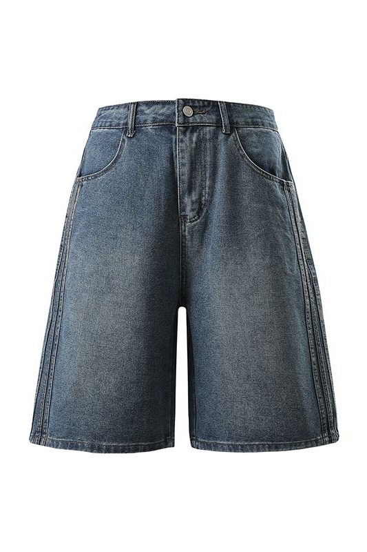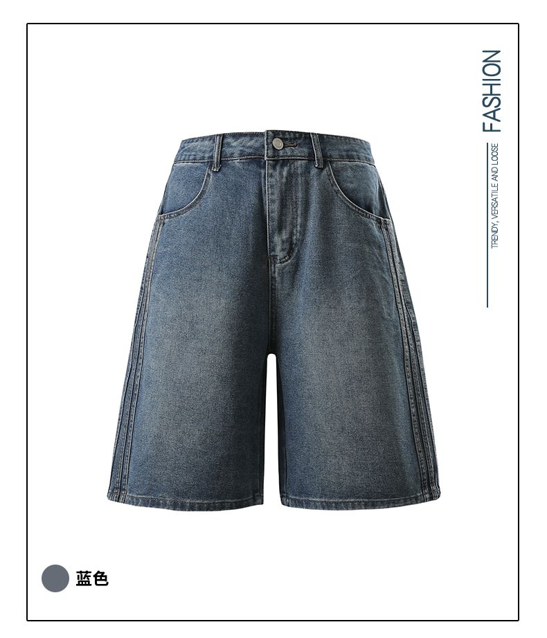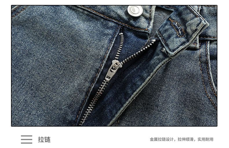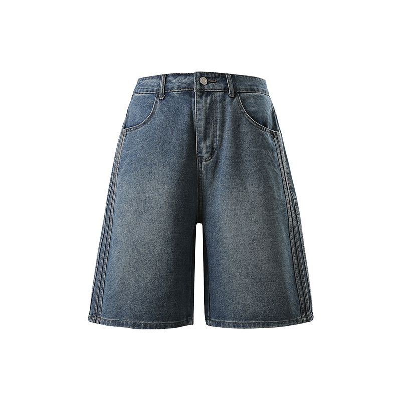 여름 새로운 아메리칸 레트로 하이웨이스트 번개 루즈핏 넓은 다리가 짧다. 바지 다용도 도루 센스 스트레이트 7 점 청바지