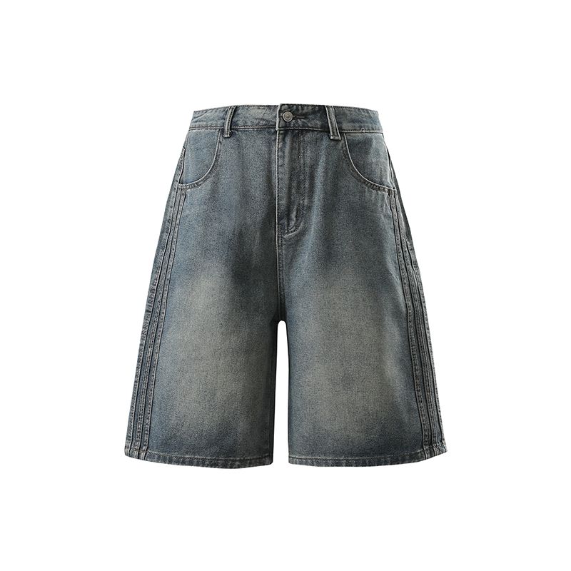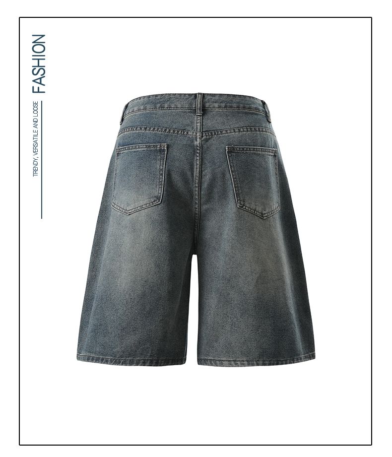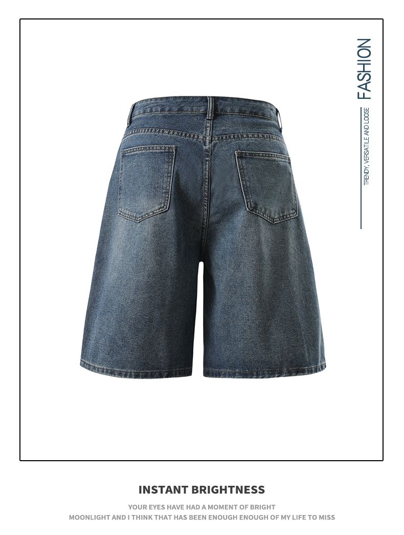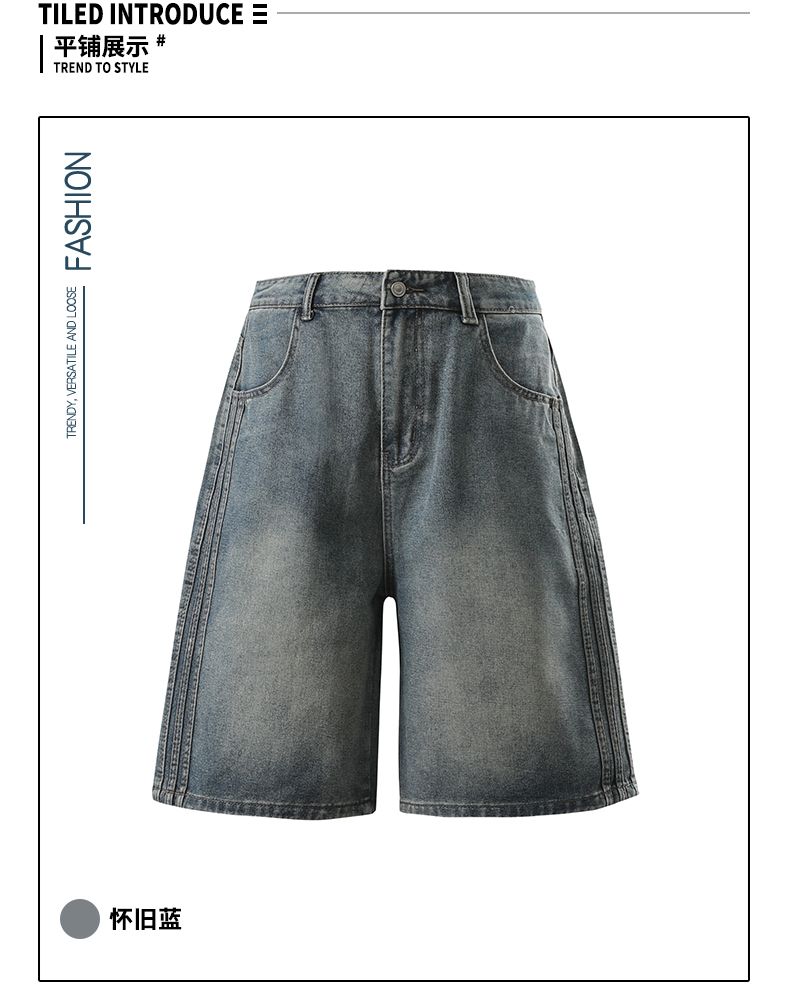 실사 2026 여름 새로운 아메리칸 레트로 루즈핏 넓은 다리가 짧다. 바지 다용도 도루 센스 스트레이트 7부 바지 청바지