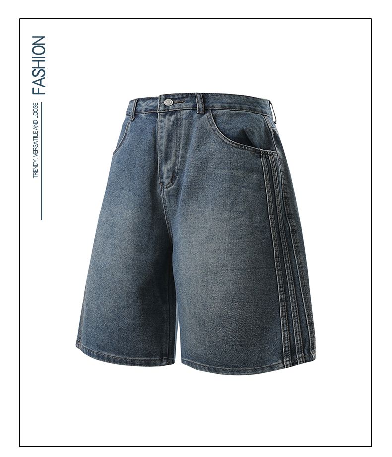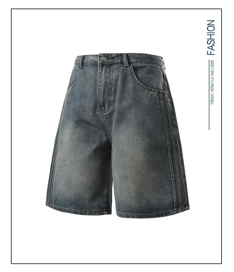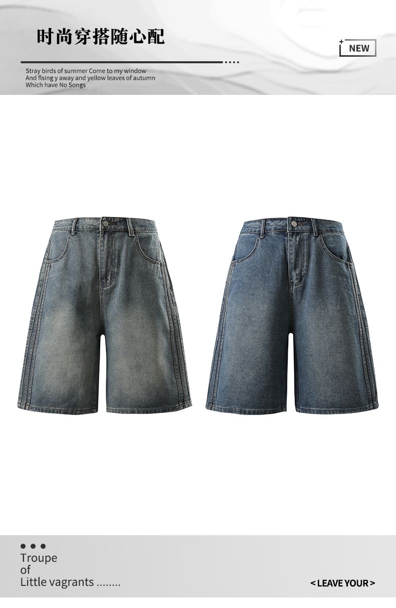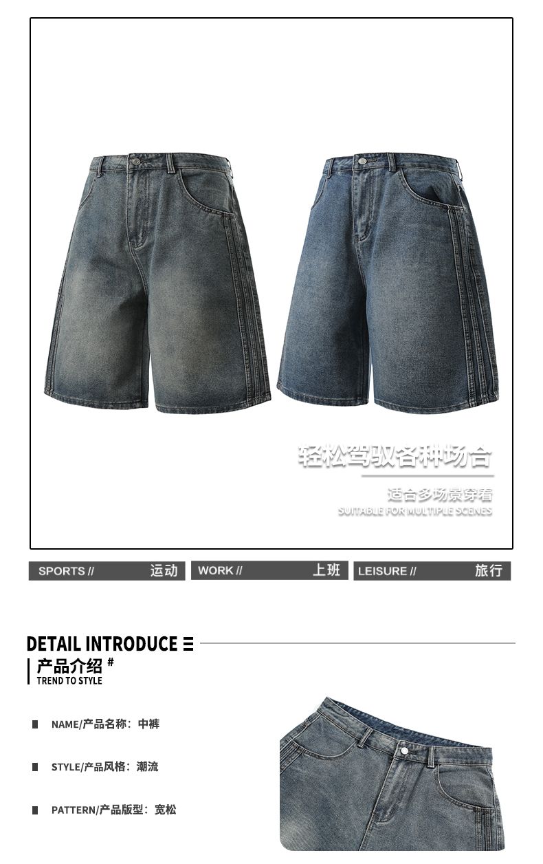 실사 2026 여름 새로운 아메리칸 레트로 루즈핏 넓은 다리가 짧다. 바지 다용도 도루 센스 스트레이트 7부 바지 청바지