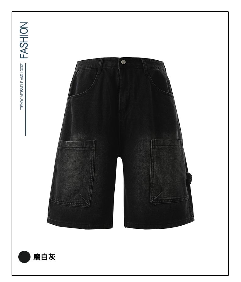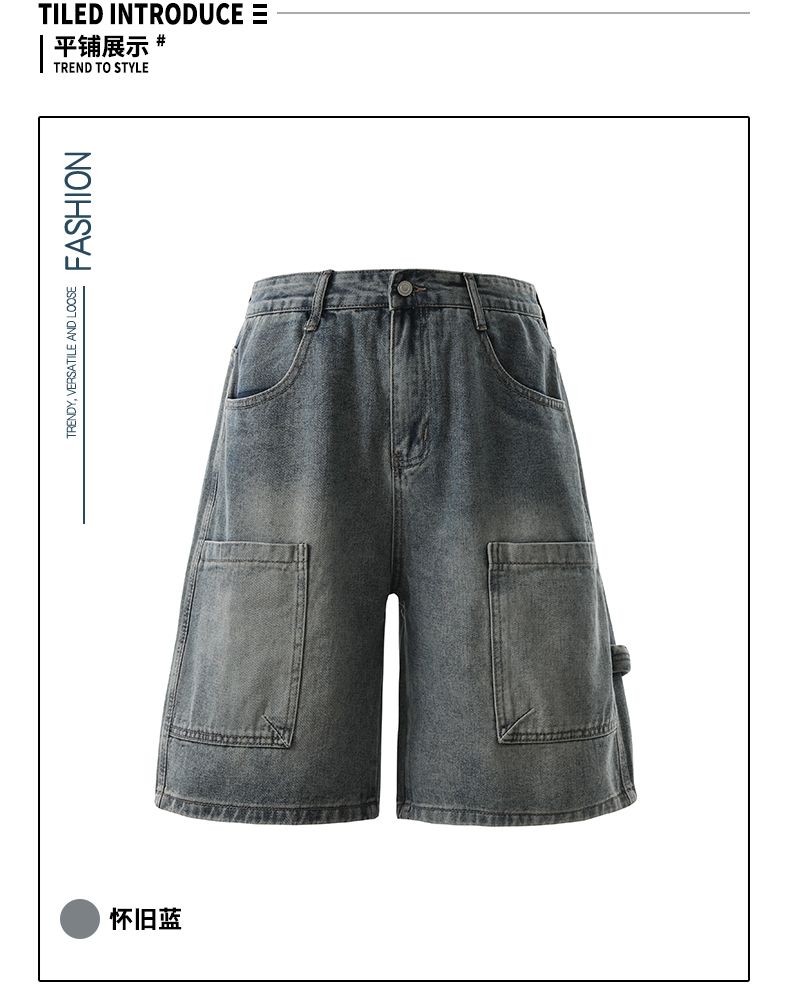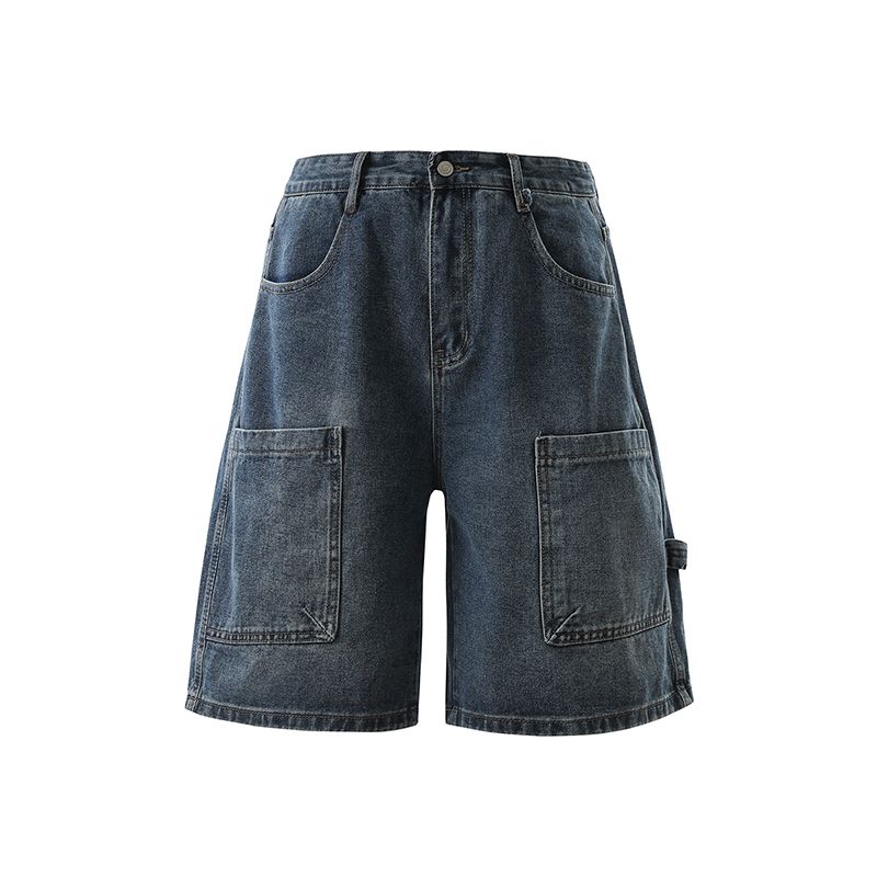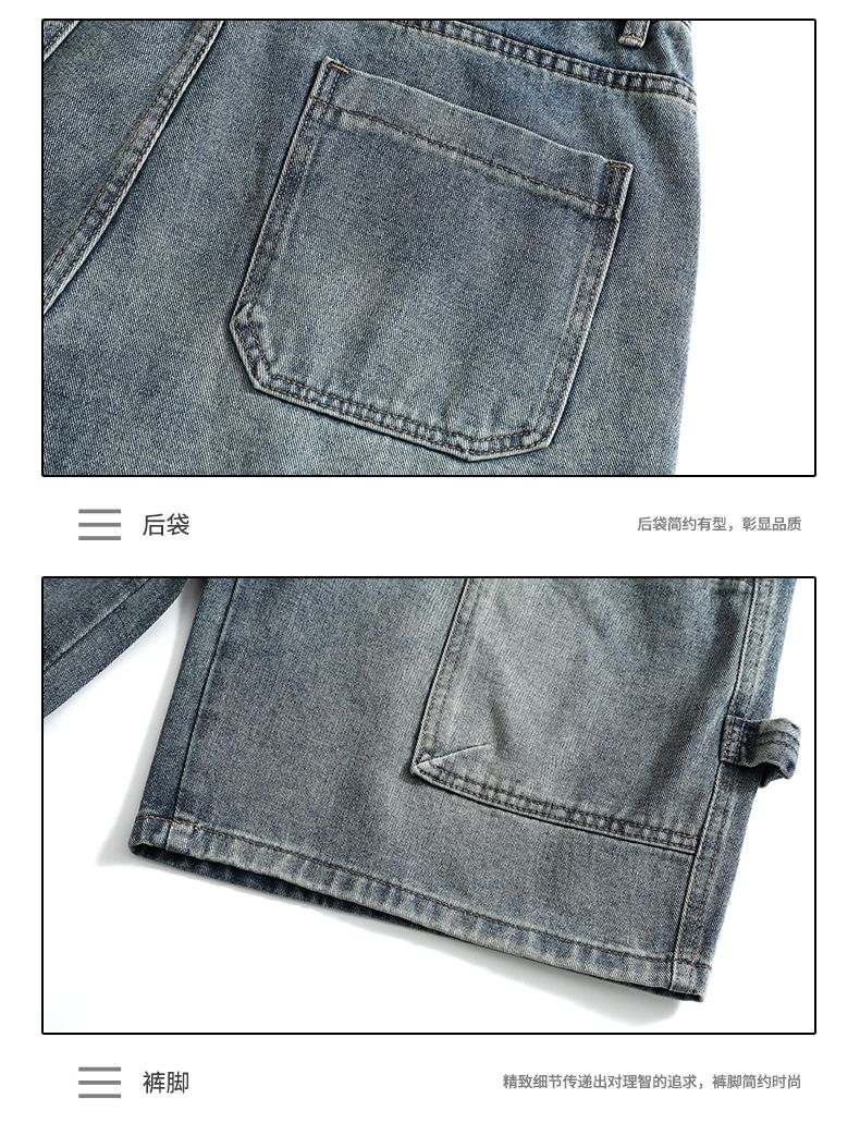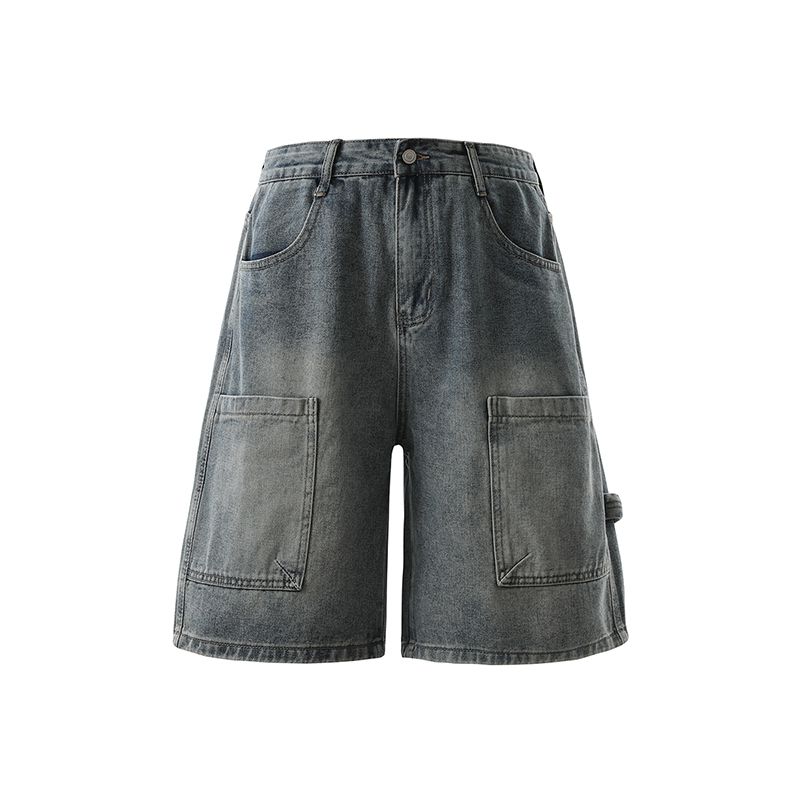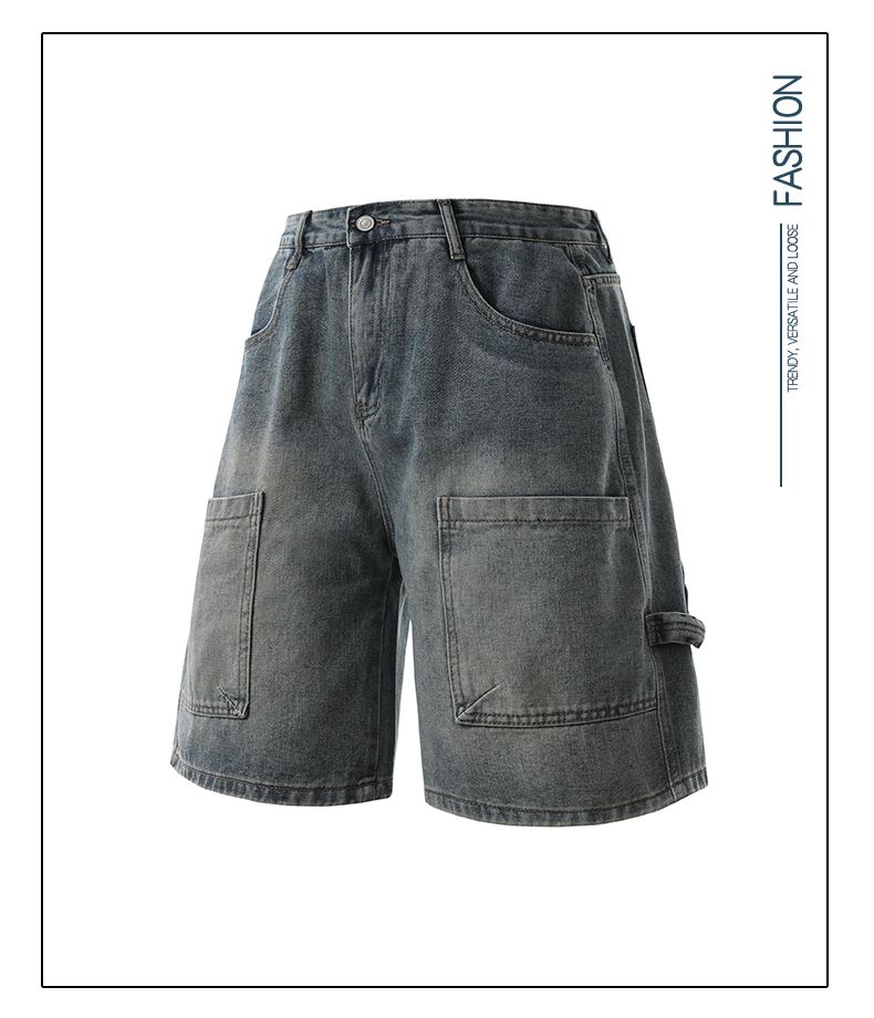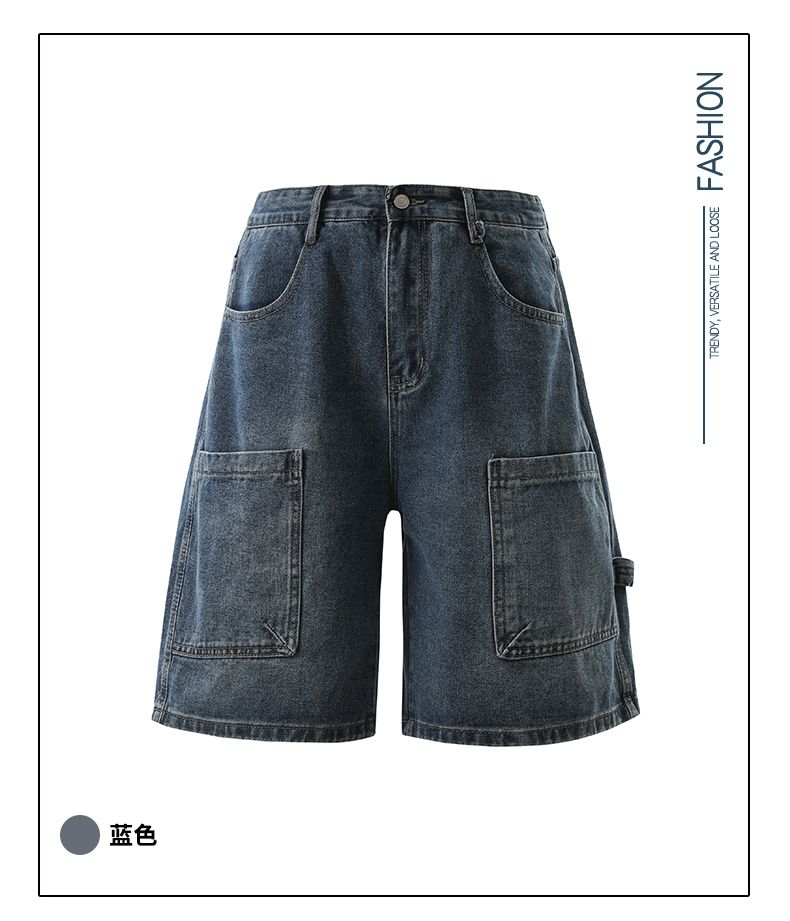 실사 2026 여름 새로운 한국 스타일 데님 바지 남자 루즈핏 스트레이트 워크웨어 팬츠 아메리칸 레트로 캐주얼 반바지