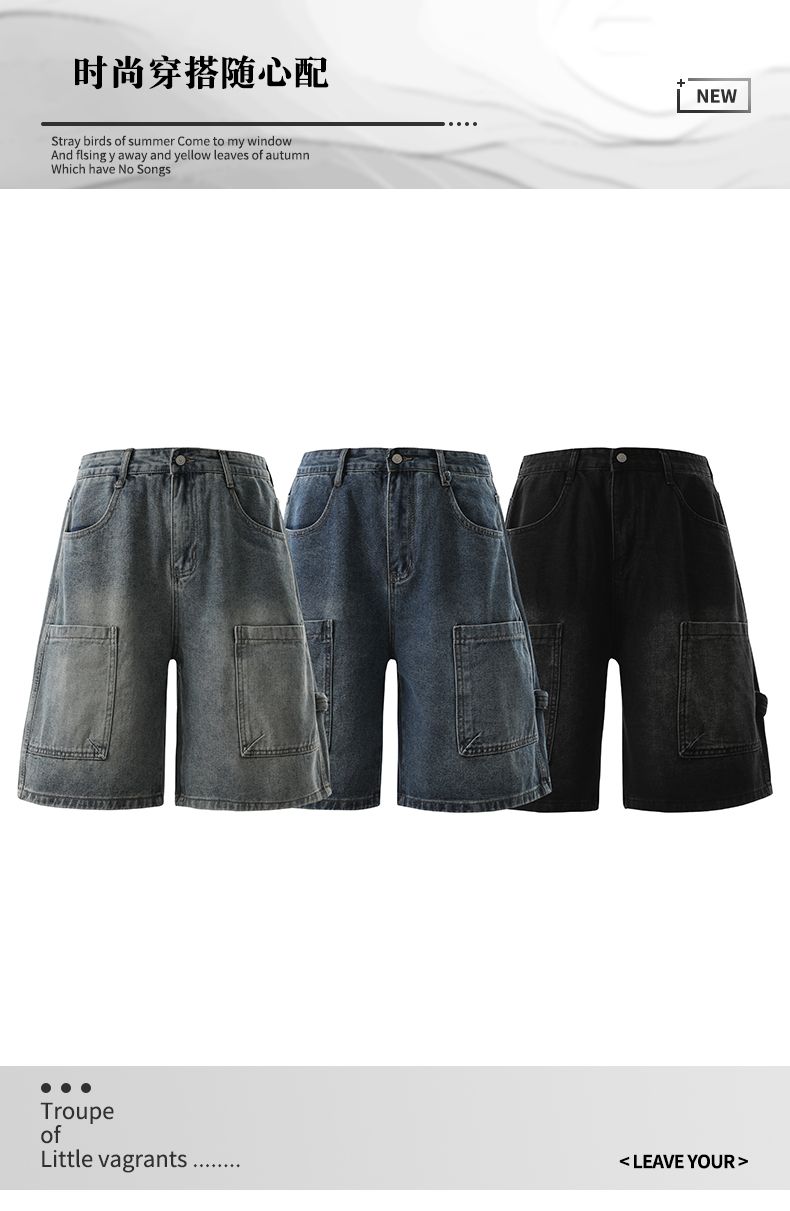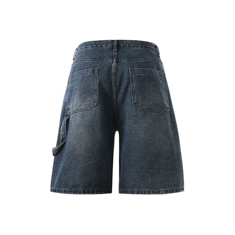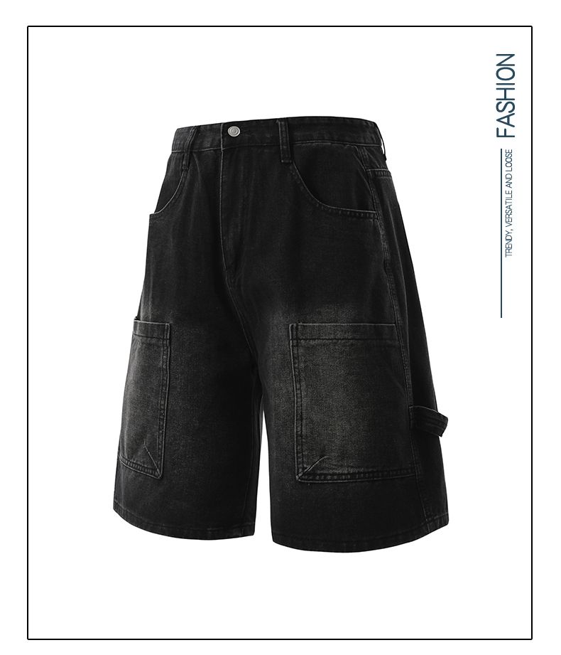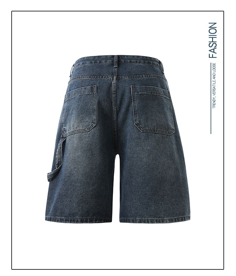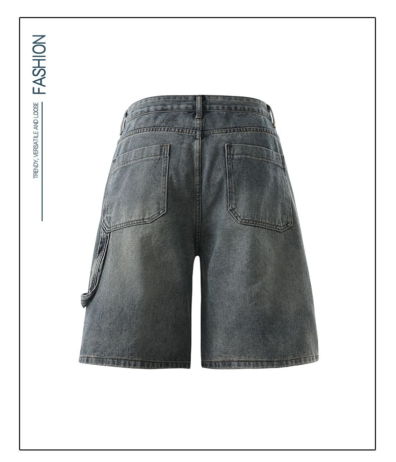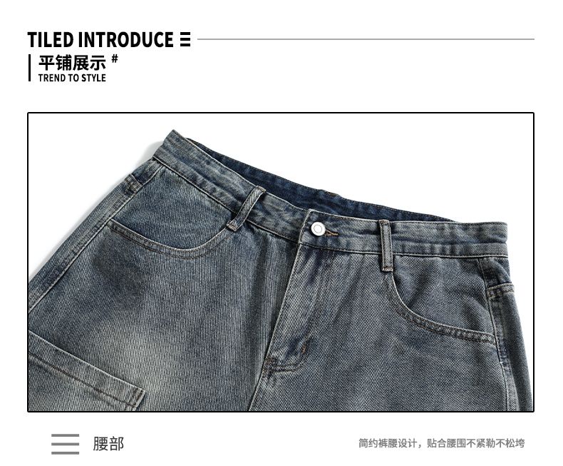 실사 2026 여름 새로운 한국 스타일 데님 바지 남자 루즈핏 스트레이트 워크웨어 팬츠 아메리칸 레트로 캐주얼 반바지