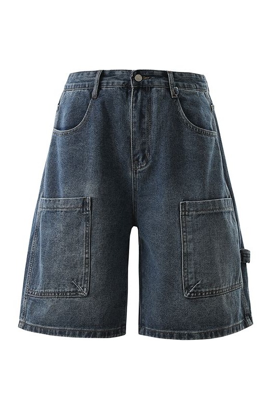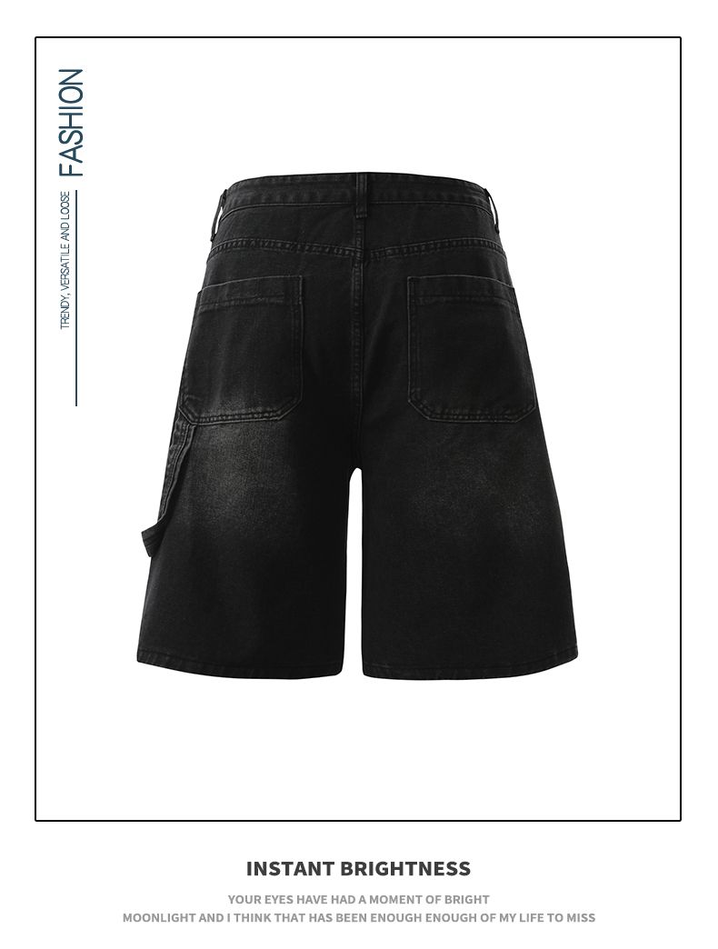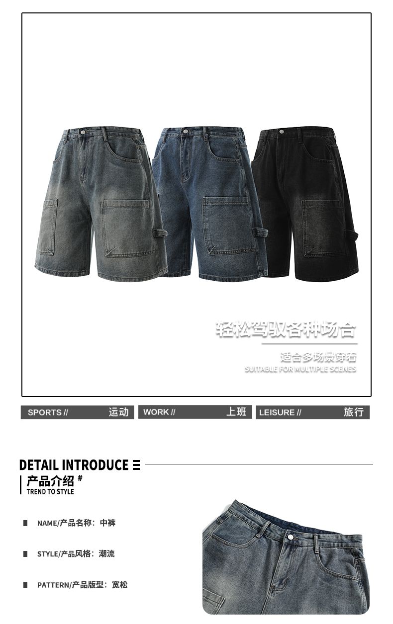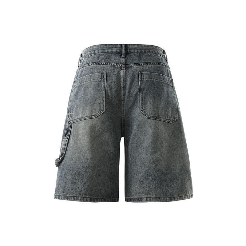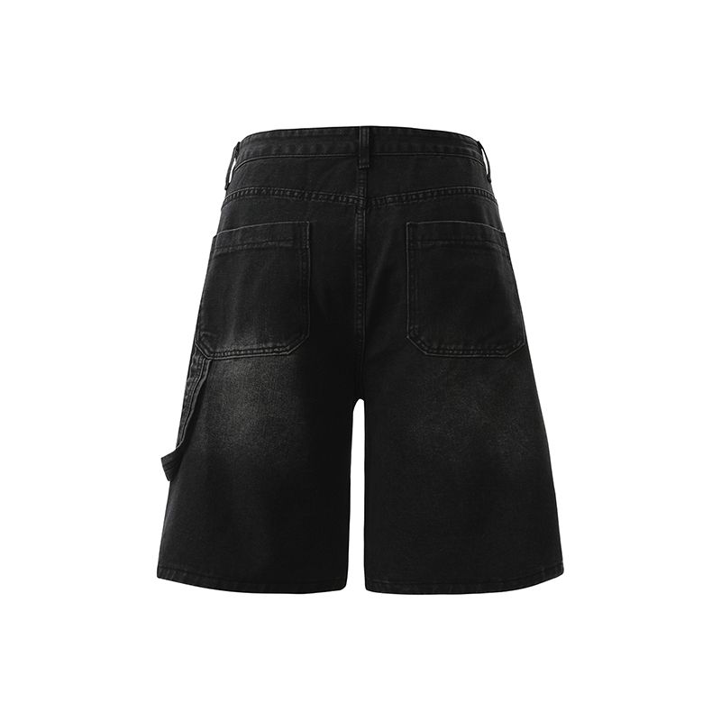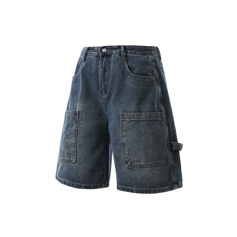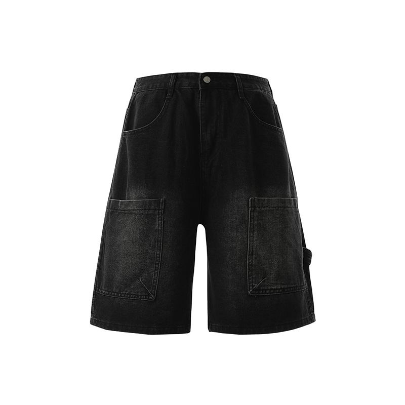 실사 2026 여름 새로운 한국 스타일 데님 바지 남자 루즈핏 스트레이트 워크웨어 팬츠 아메리칸 레트로 캐주얼 반바지