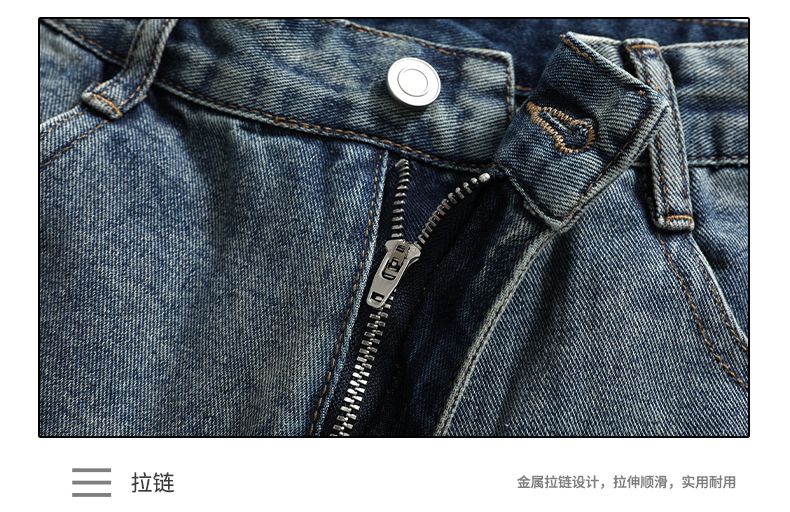 여름 새로운 아메리칸 레트로 하이웨이스트 번개 루즈핏 넓은 다리가 짧다. 바지 다용도 도루 센스 스트레이트 7 점 청바지