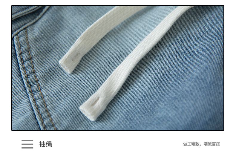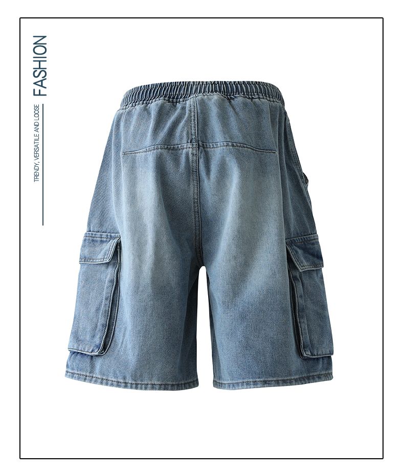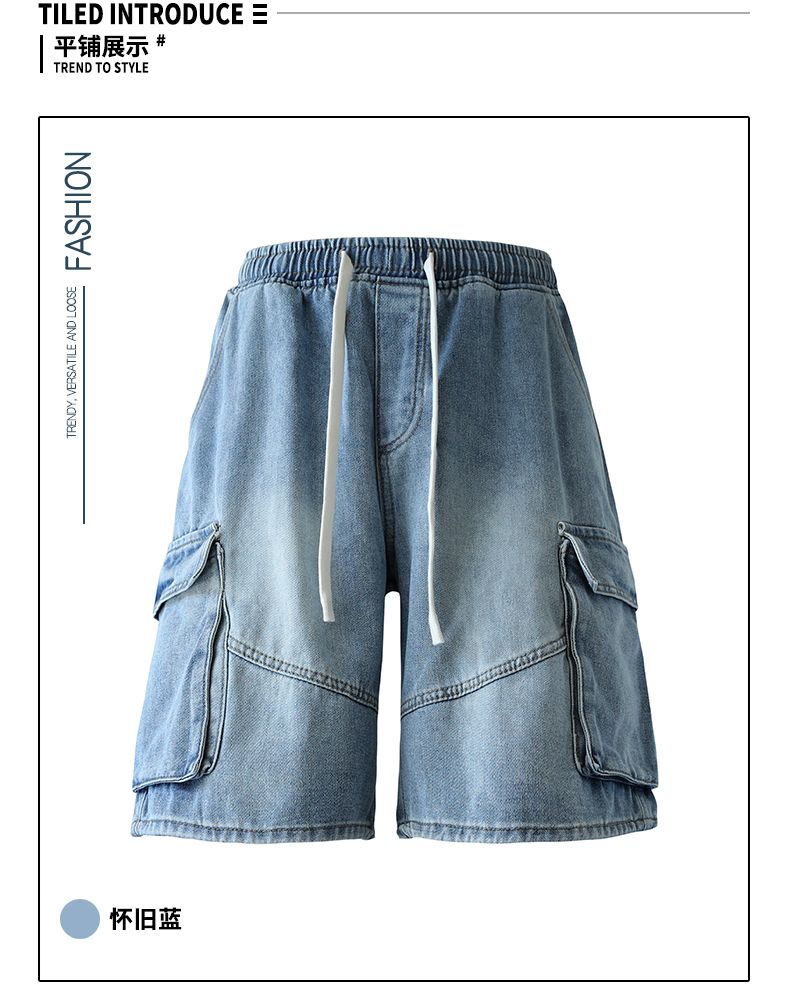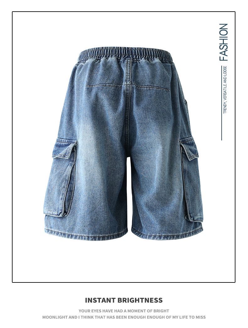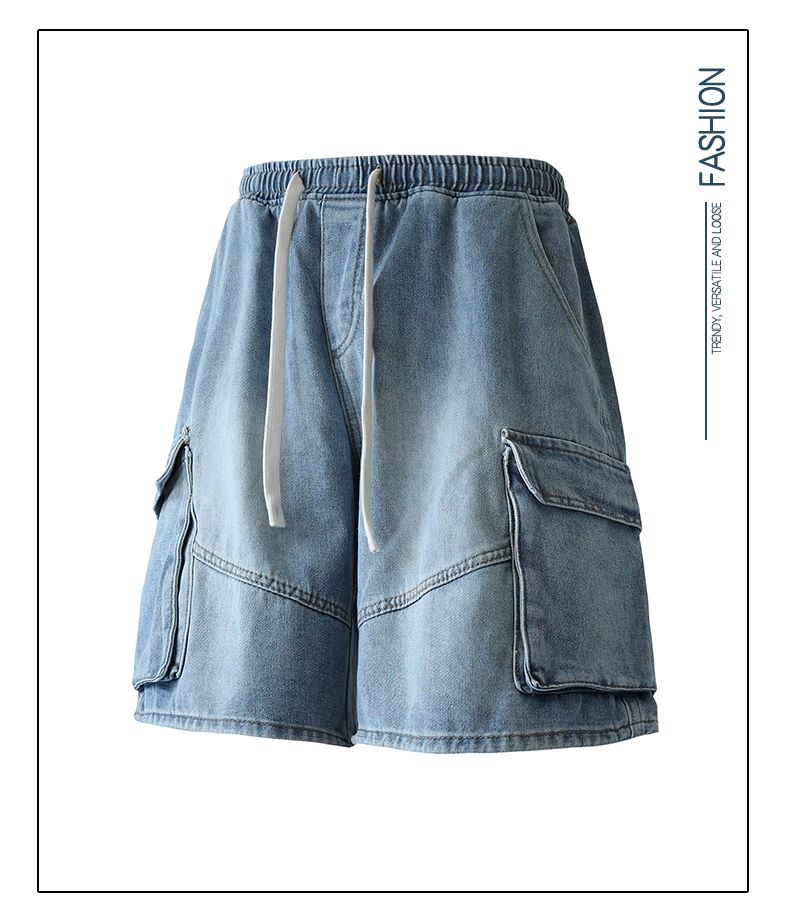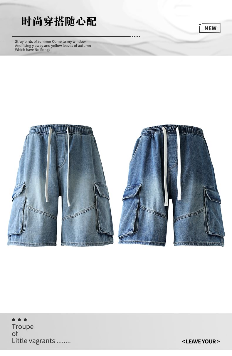 실사 여름 새로운 워크웨어 빅 포켓 데님 오부 바지 남자 루즈핏 전체 밴딩 펌프 로프 캐주얼 다용도 바지