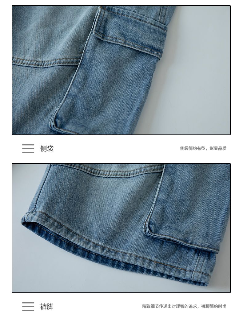 실사 2026 여름 새로운 아메리칸 레트로 루즈핏 넓은 다리가 짧다. 바지 다용도 도루 센스 스트레이트 7부 바지 청바지