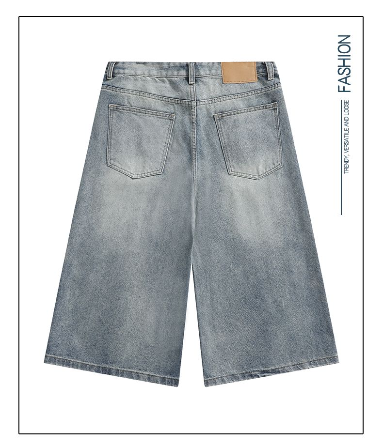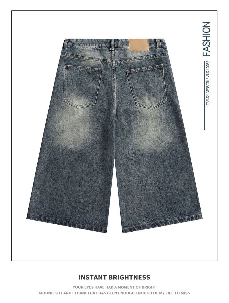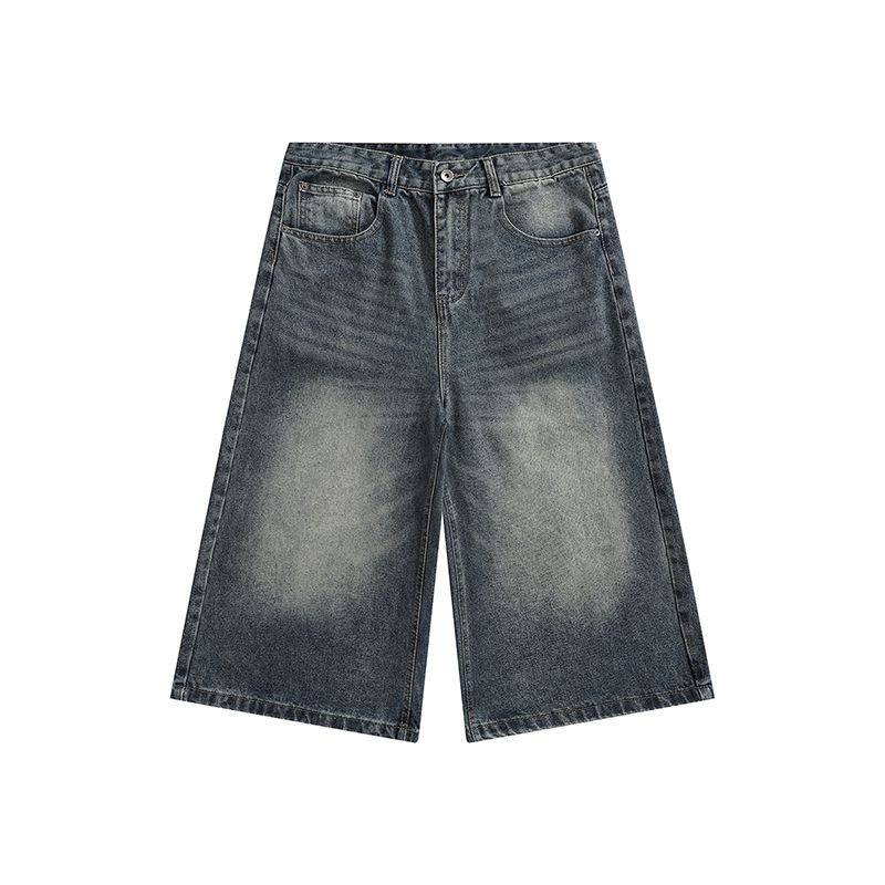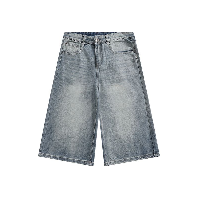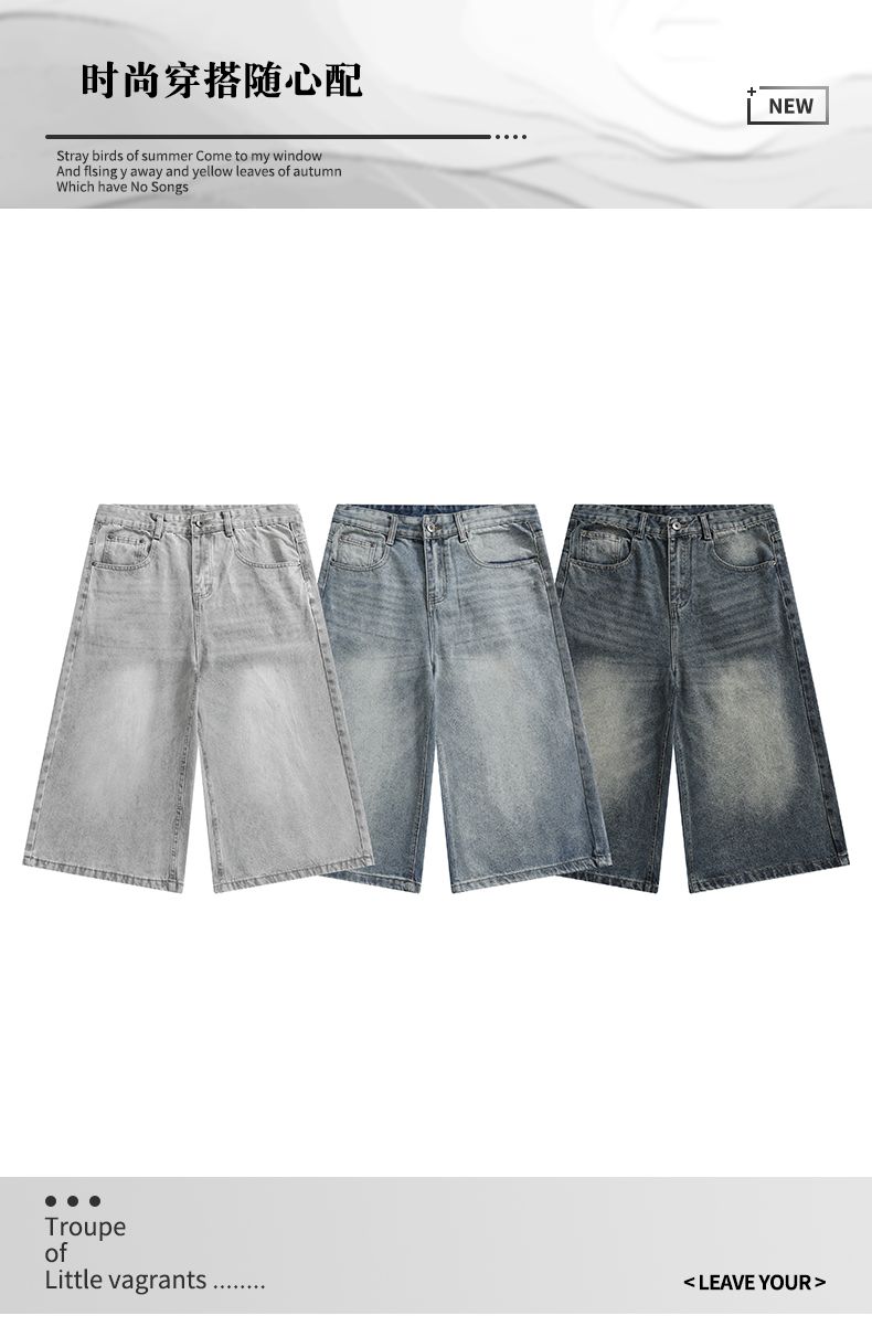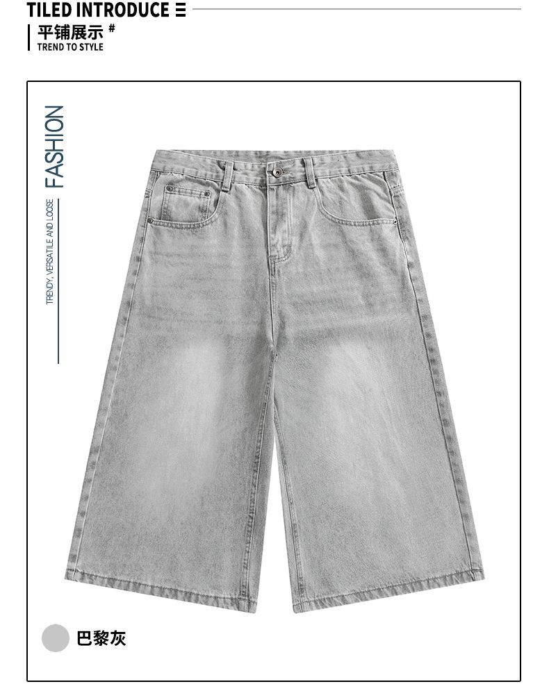 실사 2026 여름 새로운 아메리칸 워싱 그라데이션 넓은 다리 데님 바지 남자 루즈핏 캐주얼 다용도 반바지