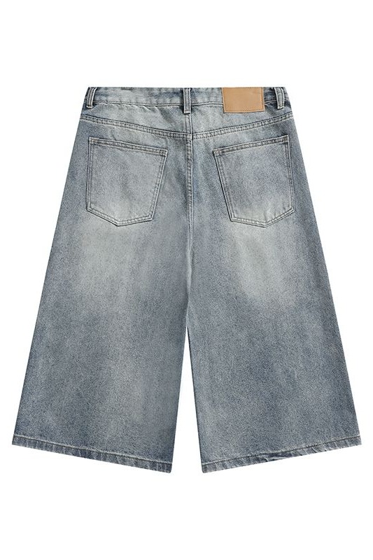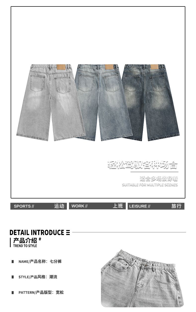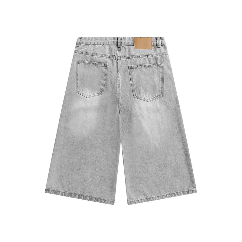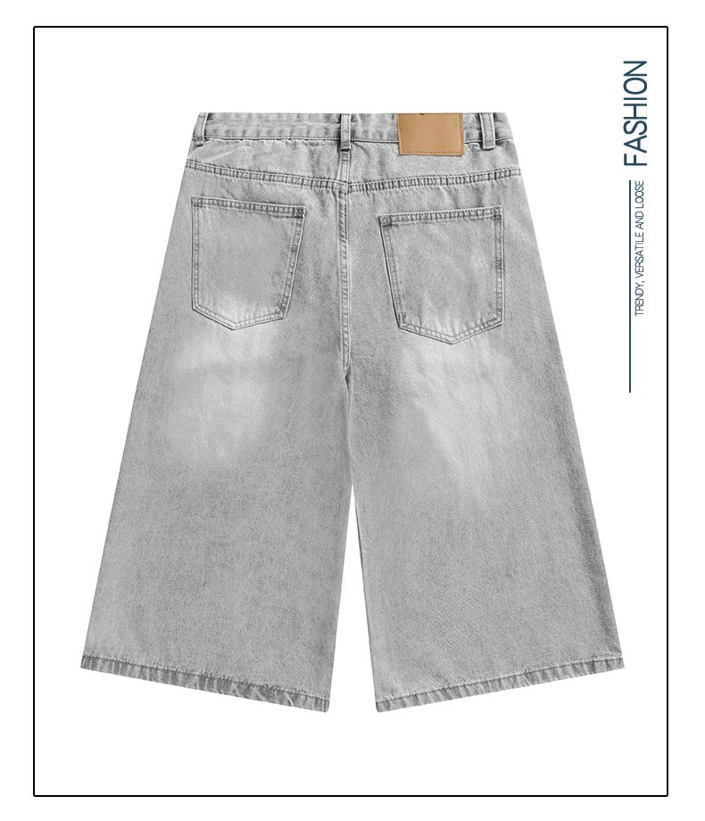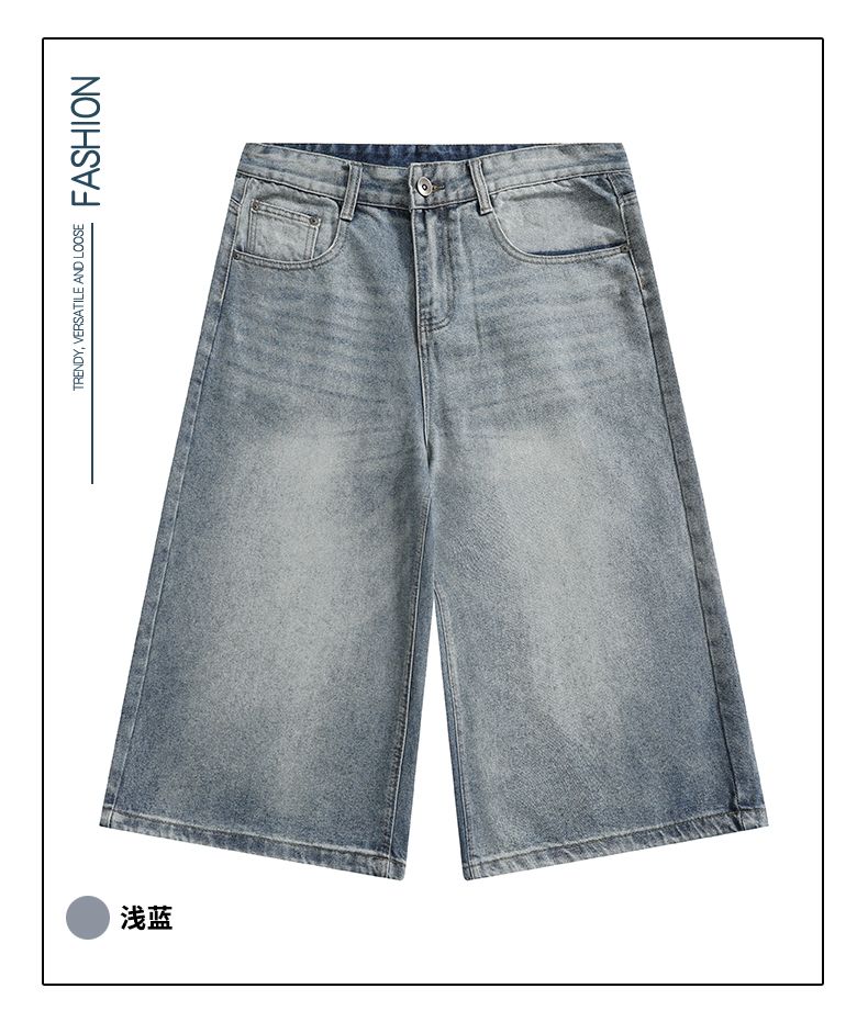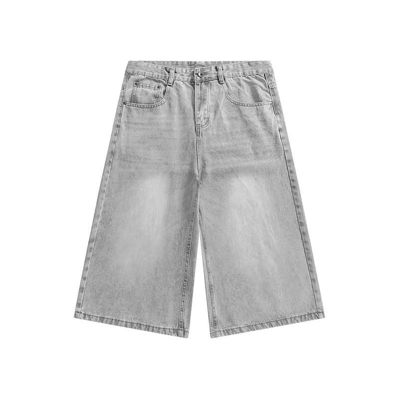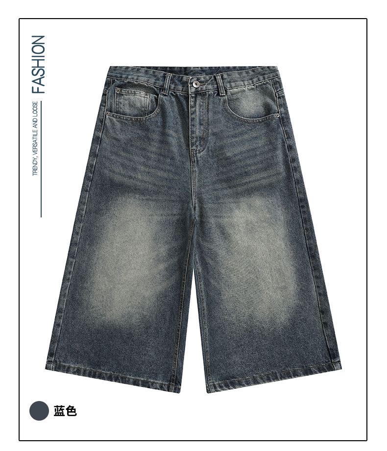 실사 2026 여름 새로운 아메리칸 워싱 그라데이션 넓은 다리 데님 바지 남자 루즈핏 캐주얼 다용도 반바지
