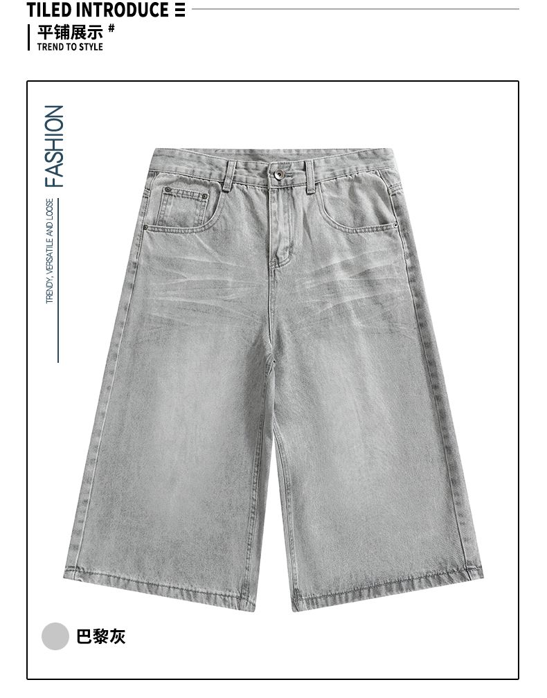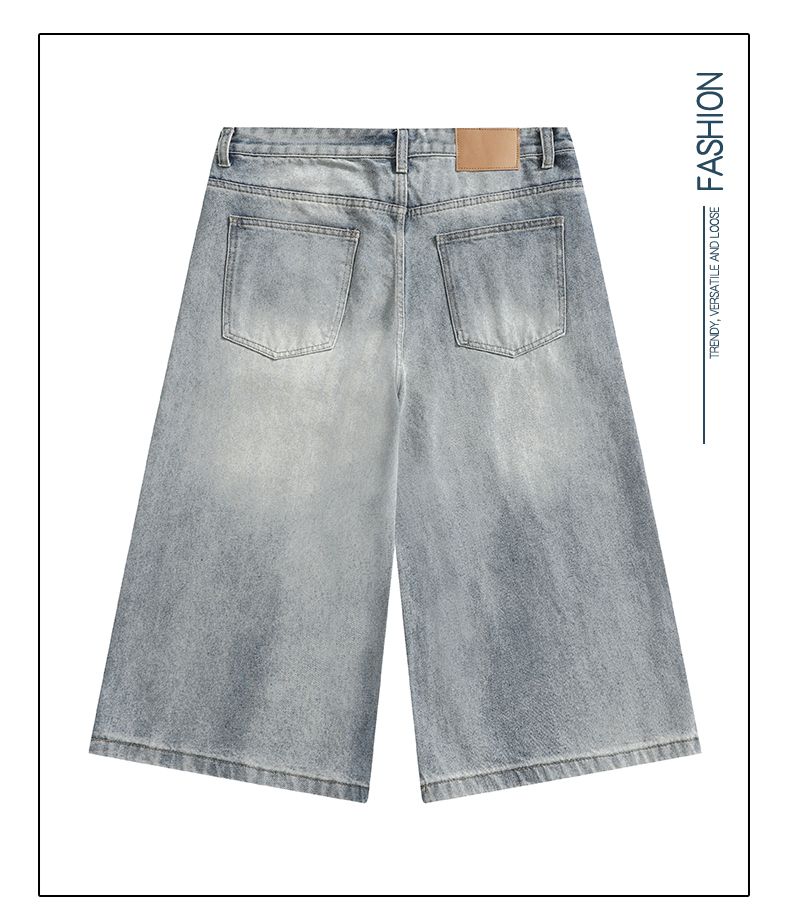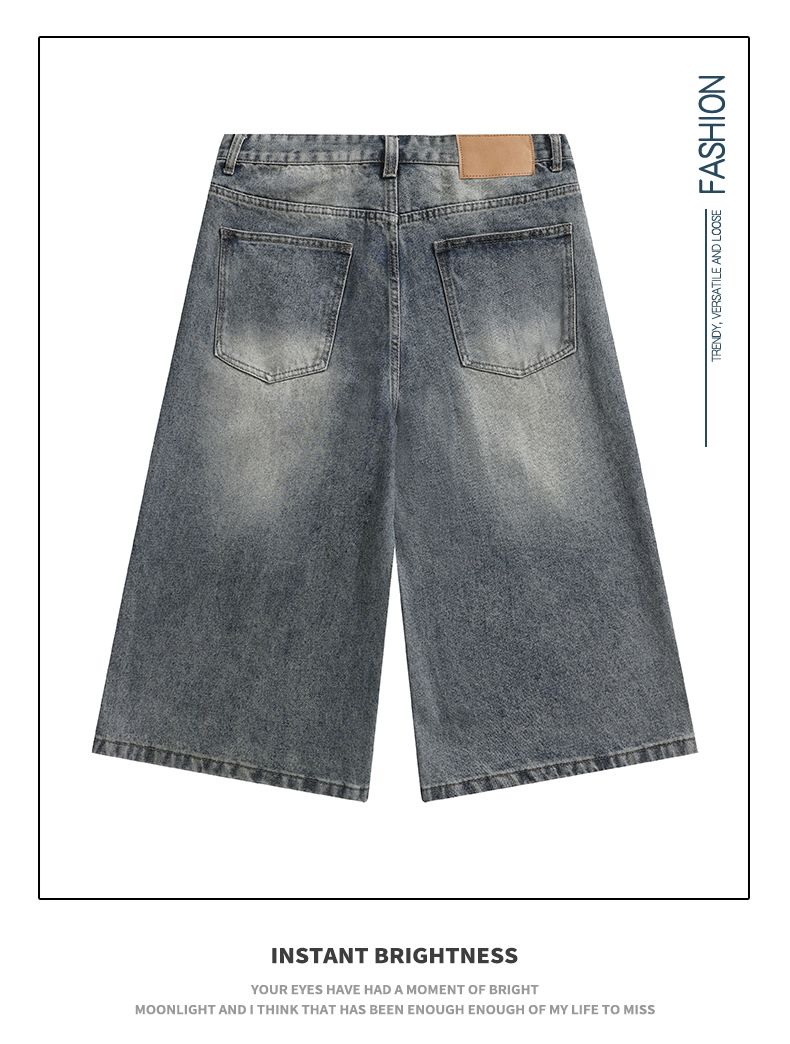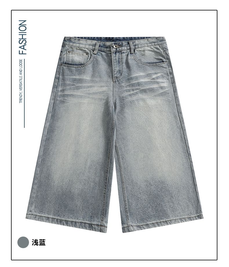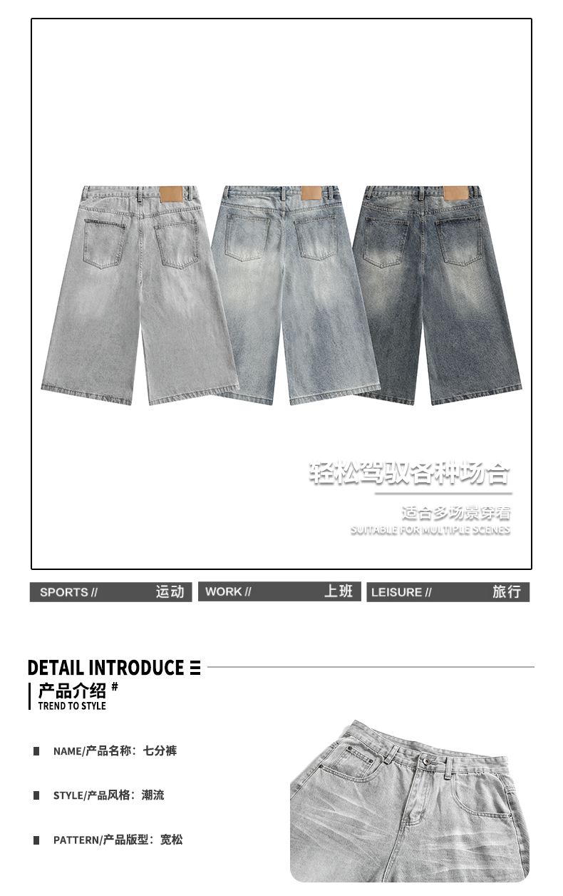 실사 2026 여름 새로운 아메리칸 레트로 루즈핏 넓은 다리가 짧다. 바지 다용도 도루 센스 스트레이트 7부 바지 청바지