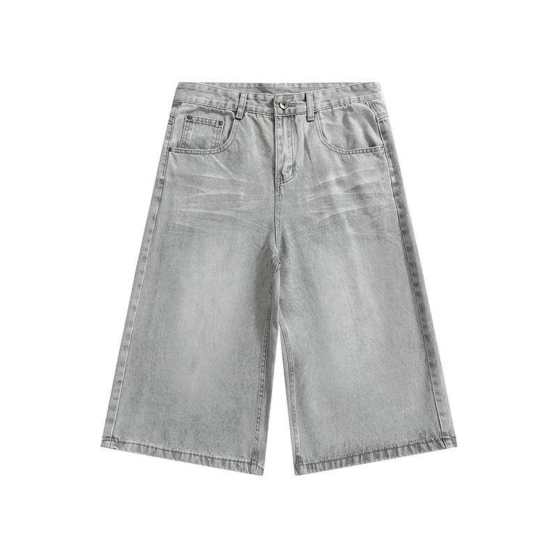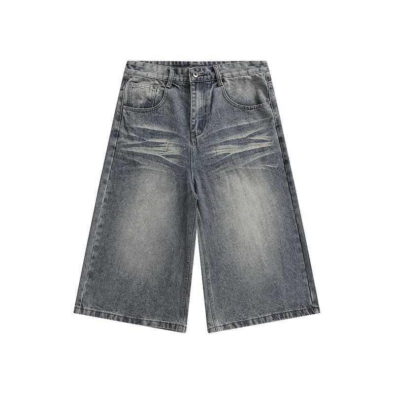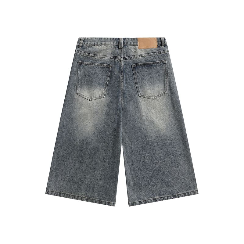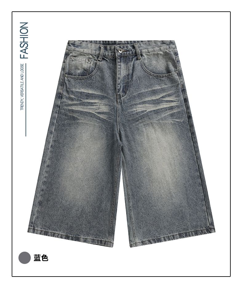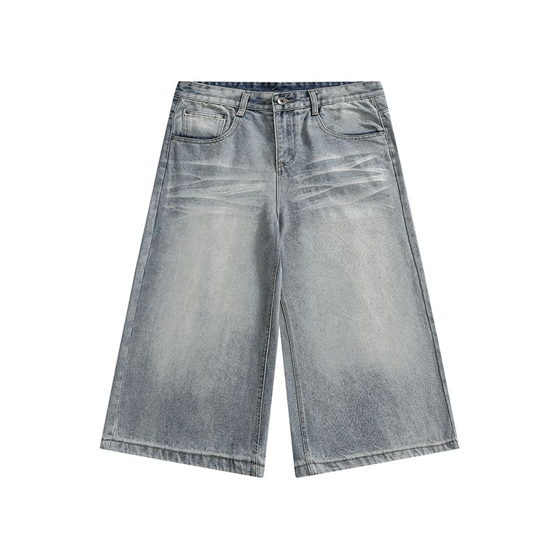 실사 2026 여름 새로운 아메리칸 레트로 루즈핏 넓은 다리가 짧다. 바지 다용도 도루 센스 스트레이트 7부 바지 청바지