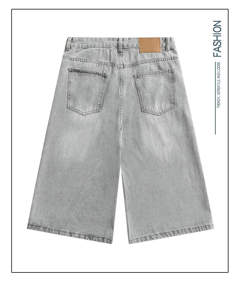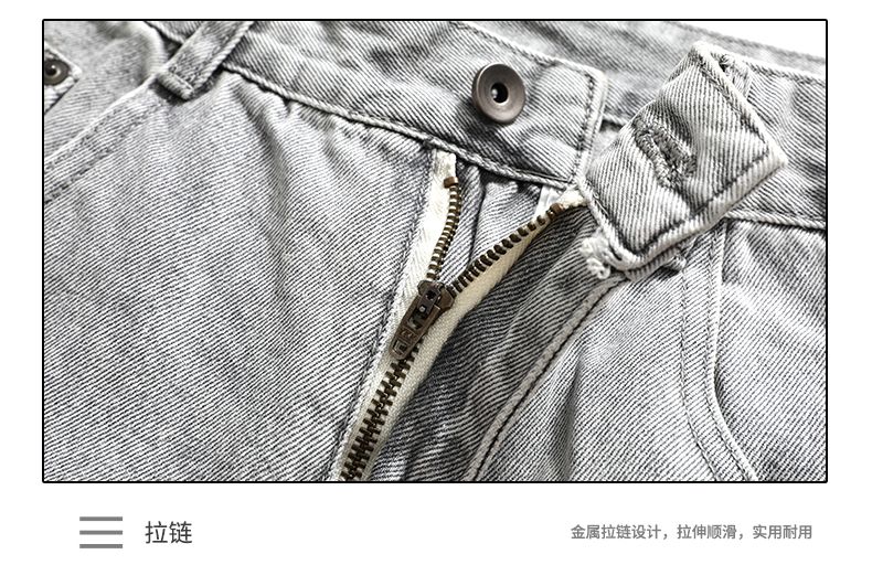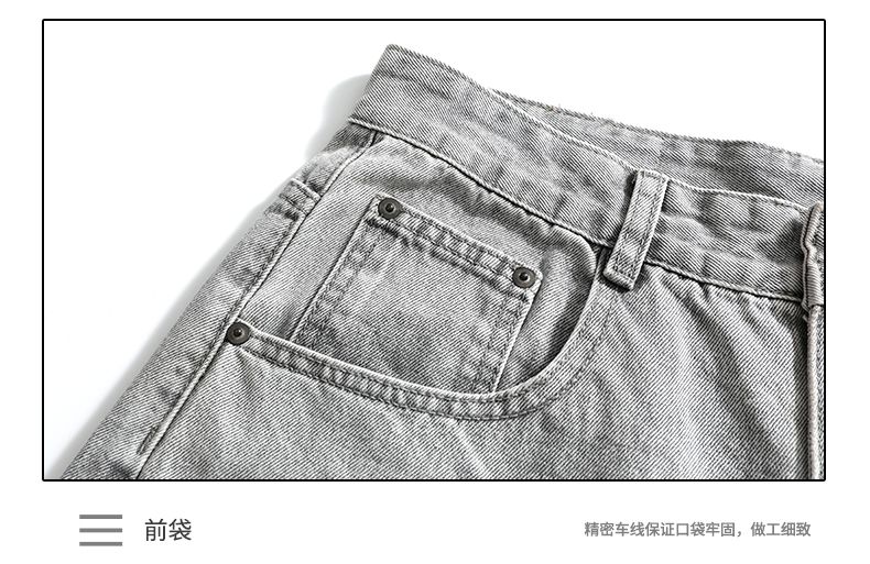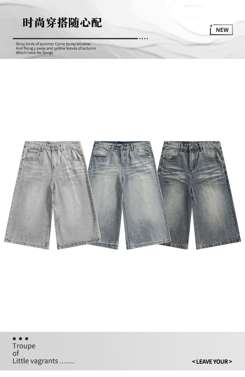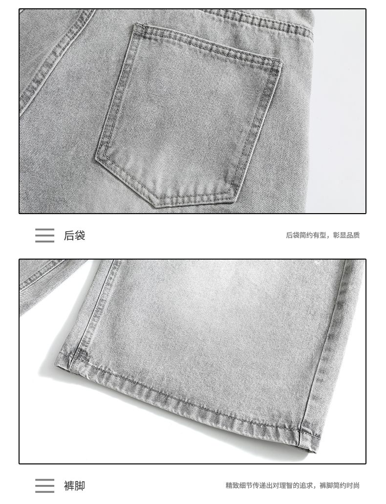 실사 2026 여름 새로운 한국 스타일 데님 바지 남자 루즈핏 스트레이트 워크웨어 팬츠 아메리칸 레트로 캐주얼 반바지