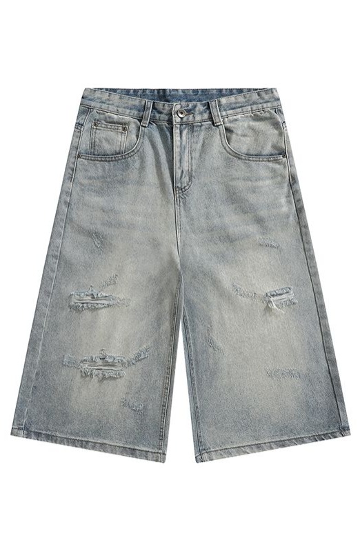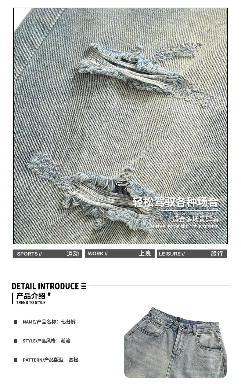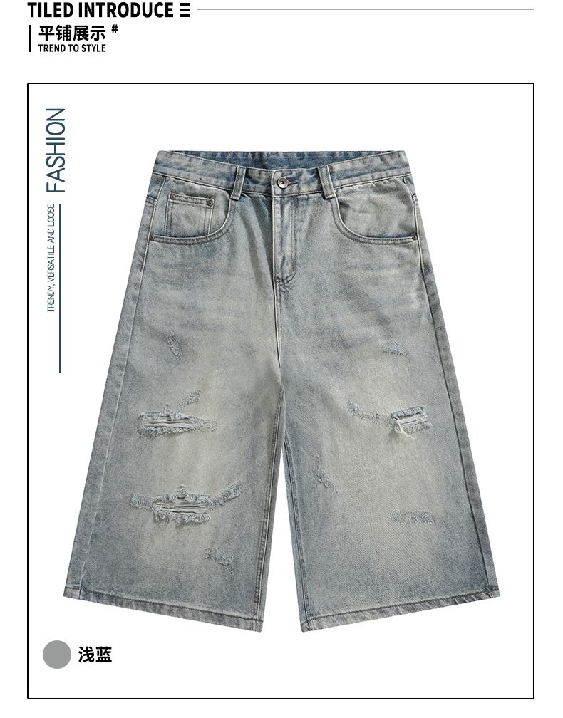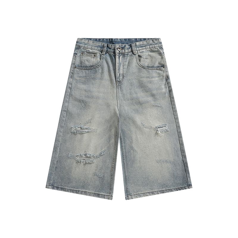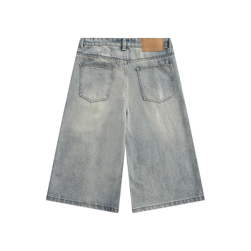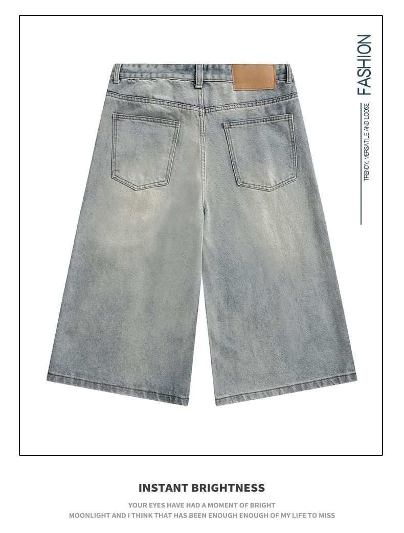 실사 2026 여름 새로운 아메리칸 레트로 루즈핏 넓은 다리가 짧다. 바지 다용도 도루 센스 스트레이트 7부 바지 청바지