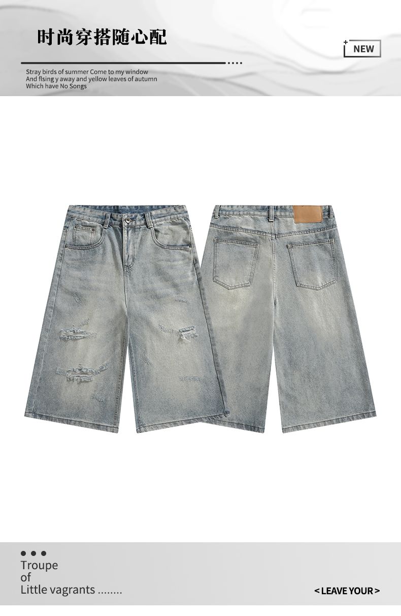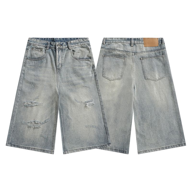 실사 2026 여름 새로운 한국 스타일 데님 바지 남자 루즈핏 스트레이트 워크웨어 팬츠 아메리칸 레트로 캐주얼 반바지