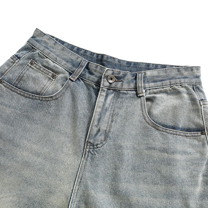 실사 2026 봄 새로운 무거운 아메리칸 워싱 2021m 핏 스타일 다용도 청바지 남녀 루즈핏 부츠컷