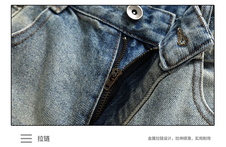 여름 새로운 아메리칸 레트로 하이웨이스트 번개 루즈핏 넓은 다리가 짧다. 바지 다용도 도루 센스 스트레이트 7 점 청바지