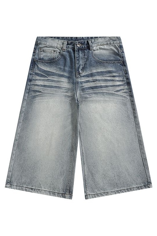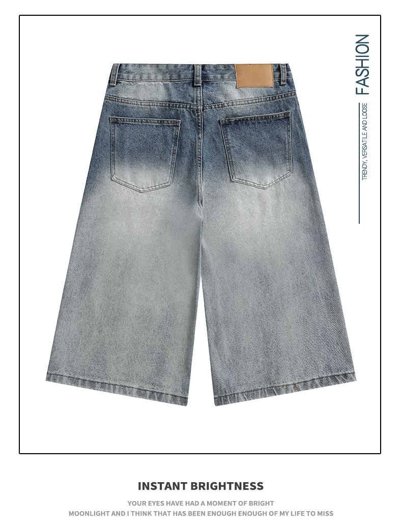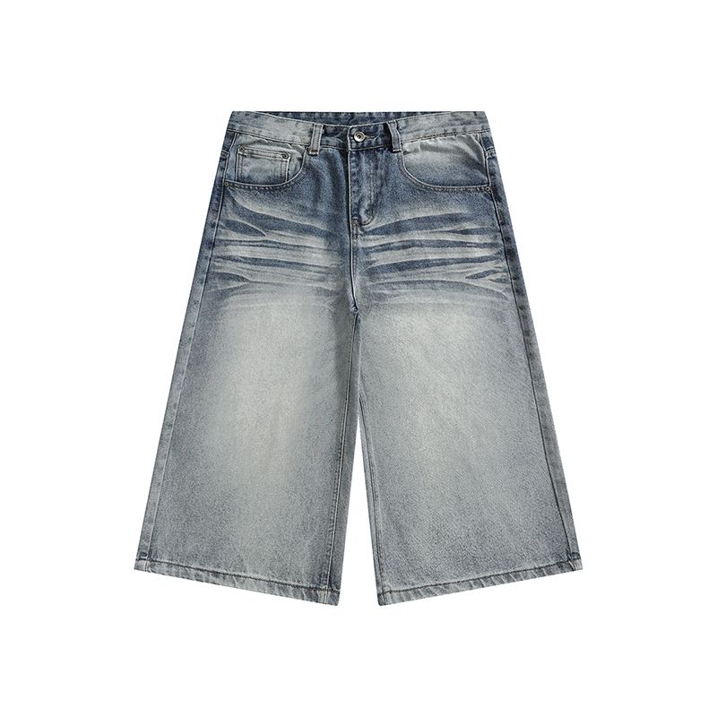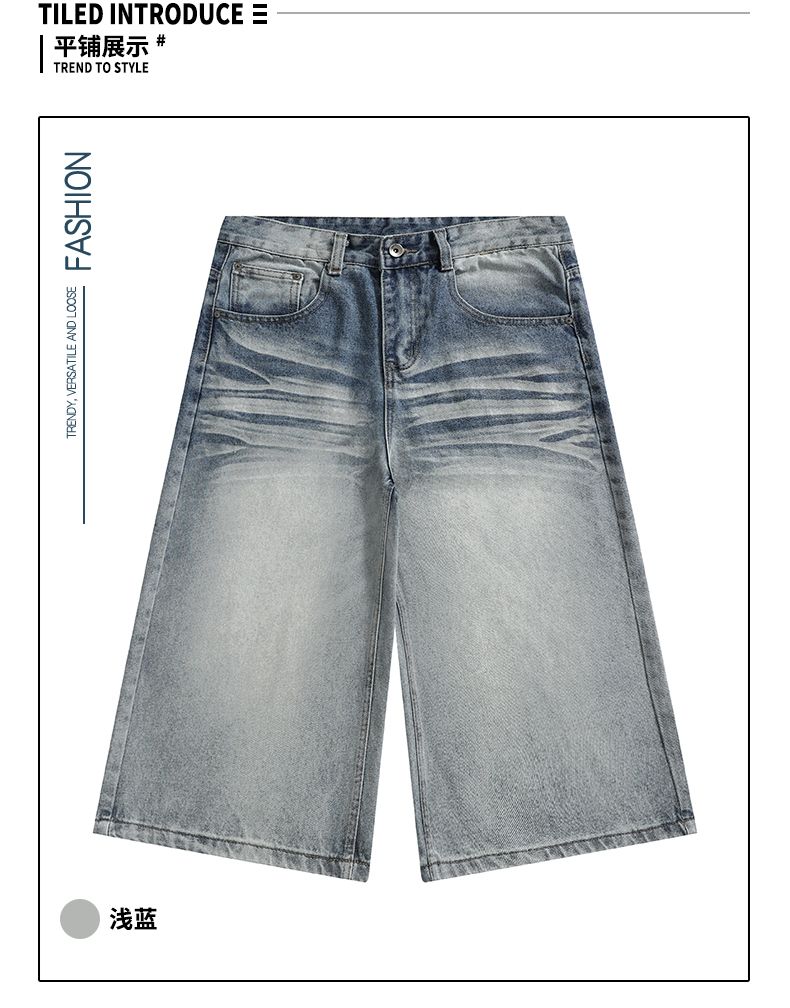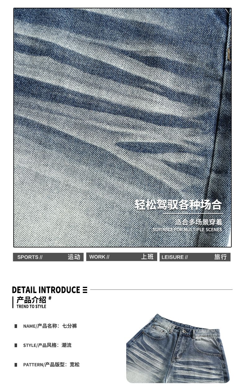 실사 2026 여름 새로운 아메리칸 레트로 루즈핏 넓은 다리가 짧다. 바지 다용도 도루 센스 스트레이트 7부 바지 청바지