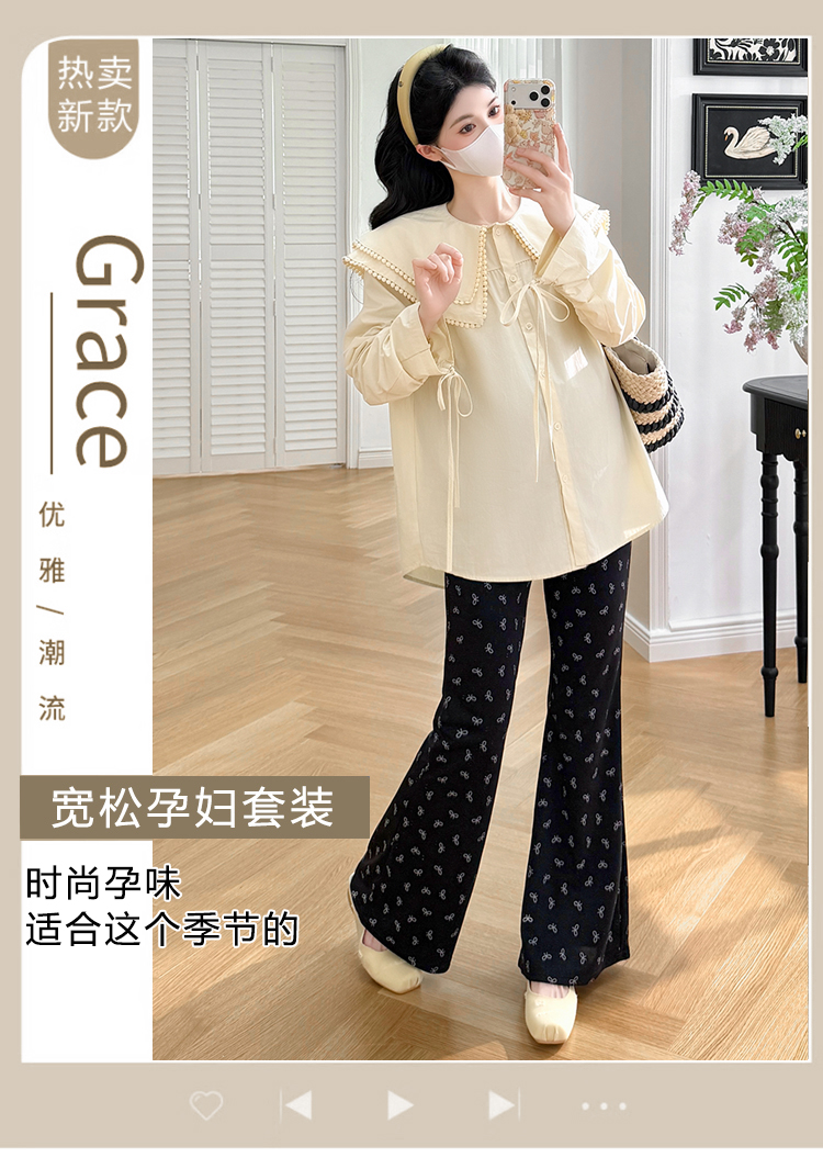 실사 지금 2026 이른 봄 신제품 출산 착용 품격 슈퍼 요정 한국 스타일 임산부 드레스 투피스 슈트