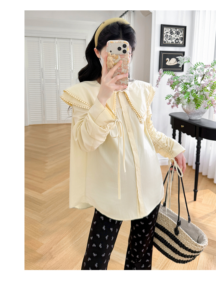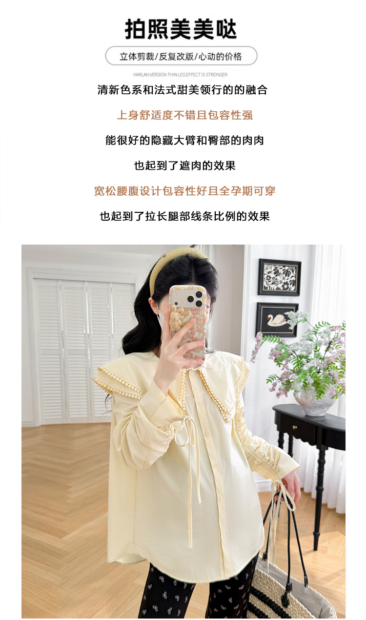 실사 2026 신제품 임산부 봄 여름 패션 달콤함 레이스업 루즈핏 셔츠 출산 착용