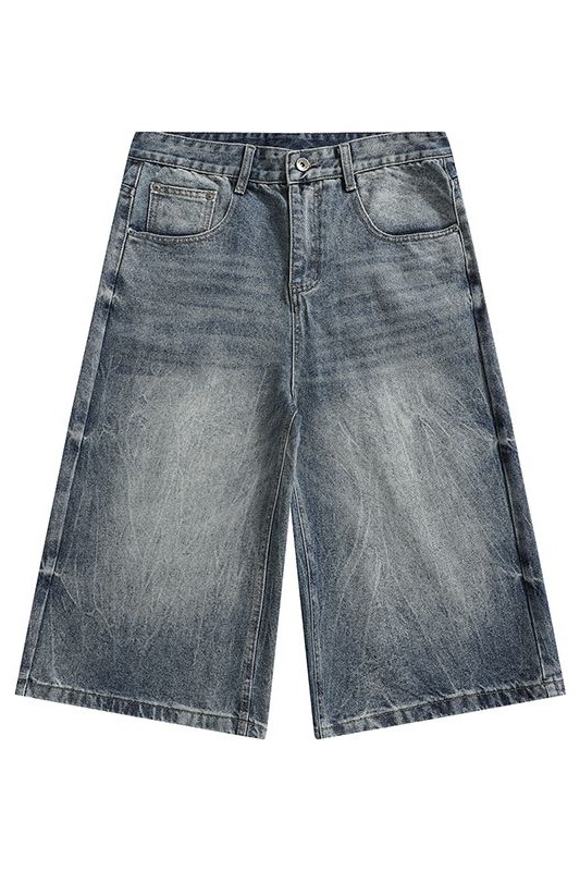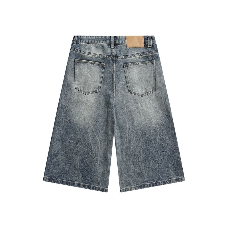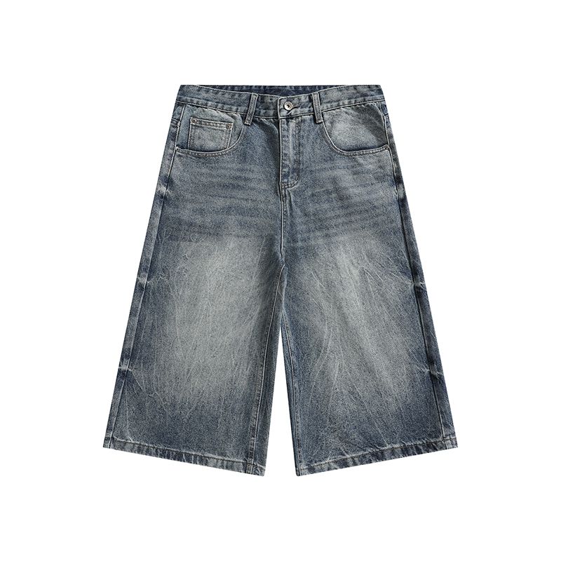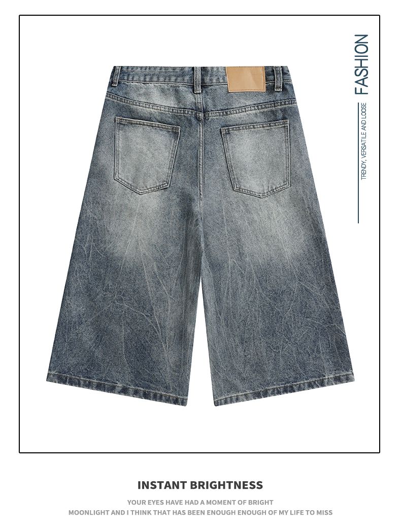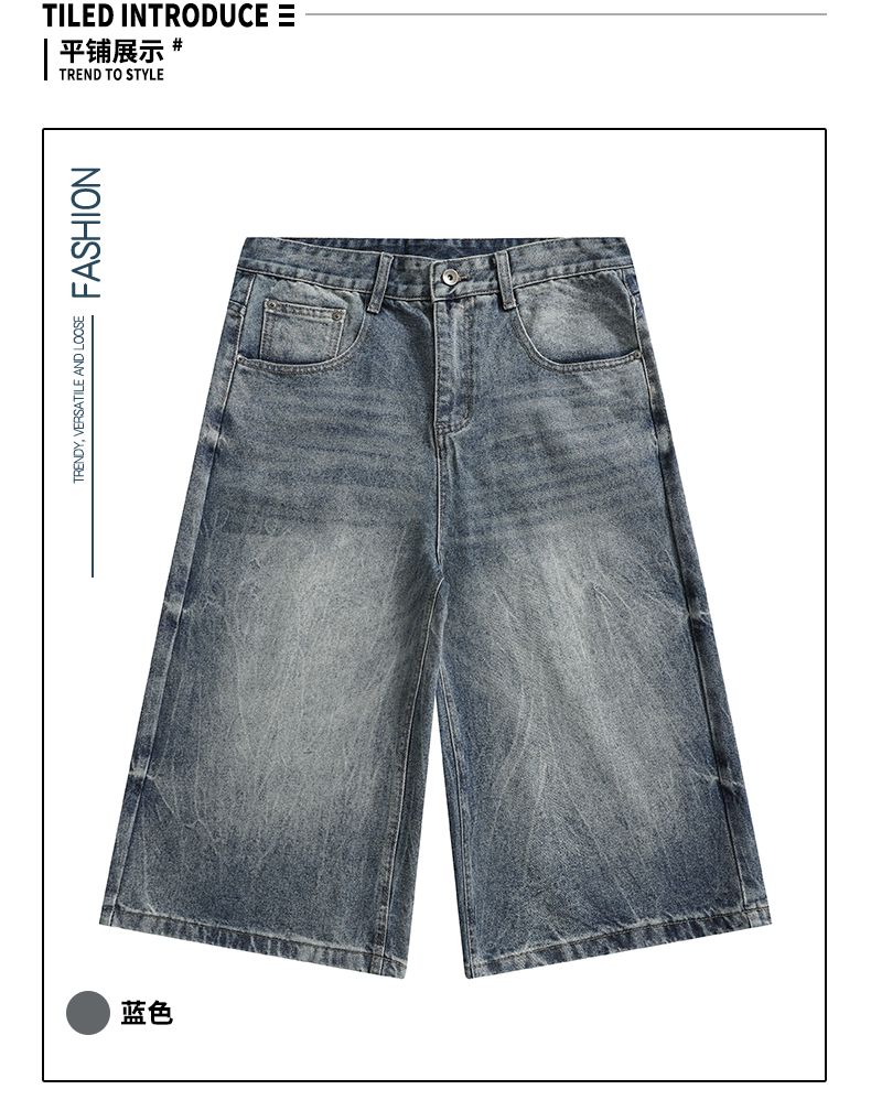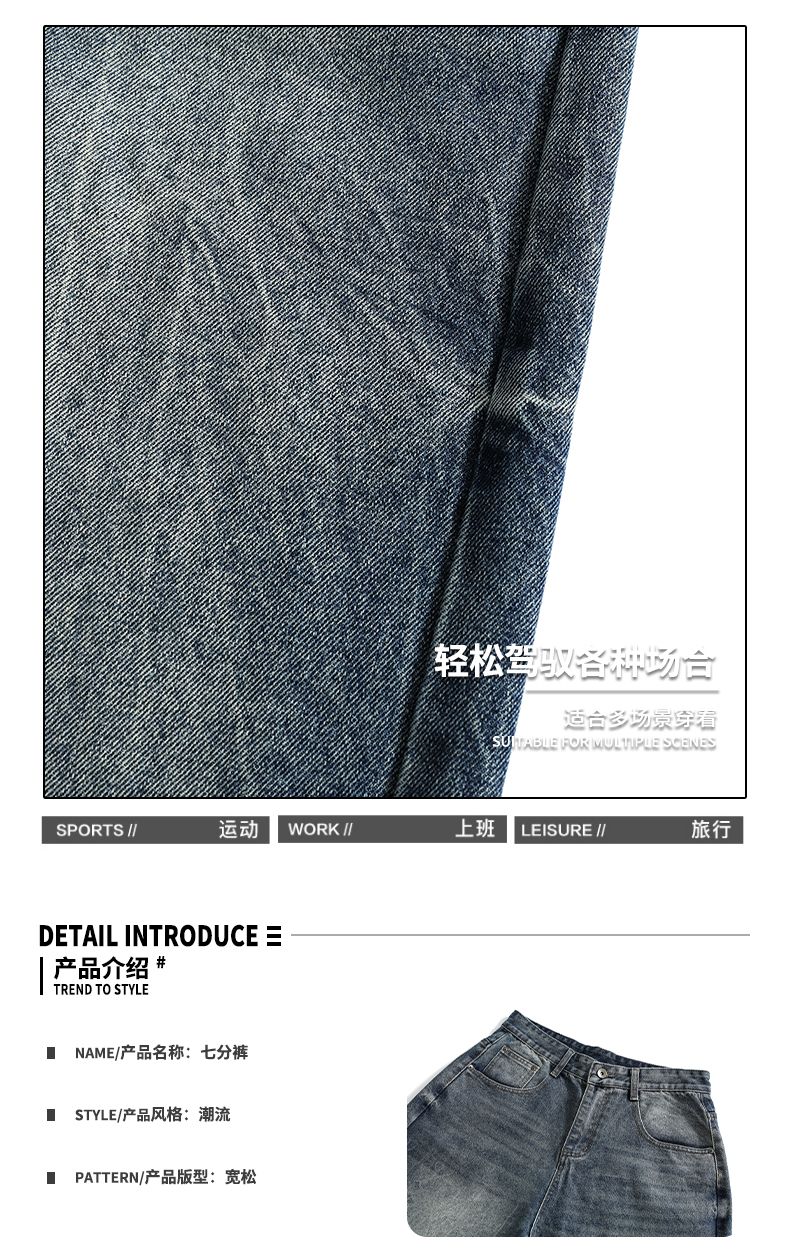 실사 2026 여름 새로운 아메리칸 레트로 루즈핏 넓은 다리가 짧다. 바지 다용도 도루 센스 스트레이트 7부 바지 청바지