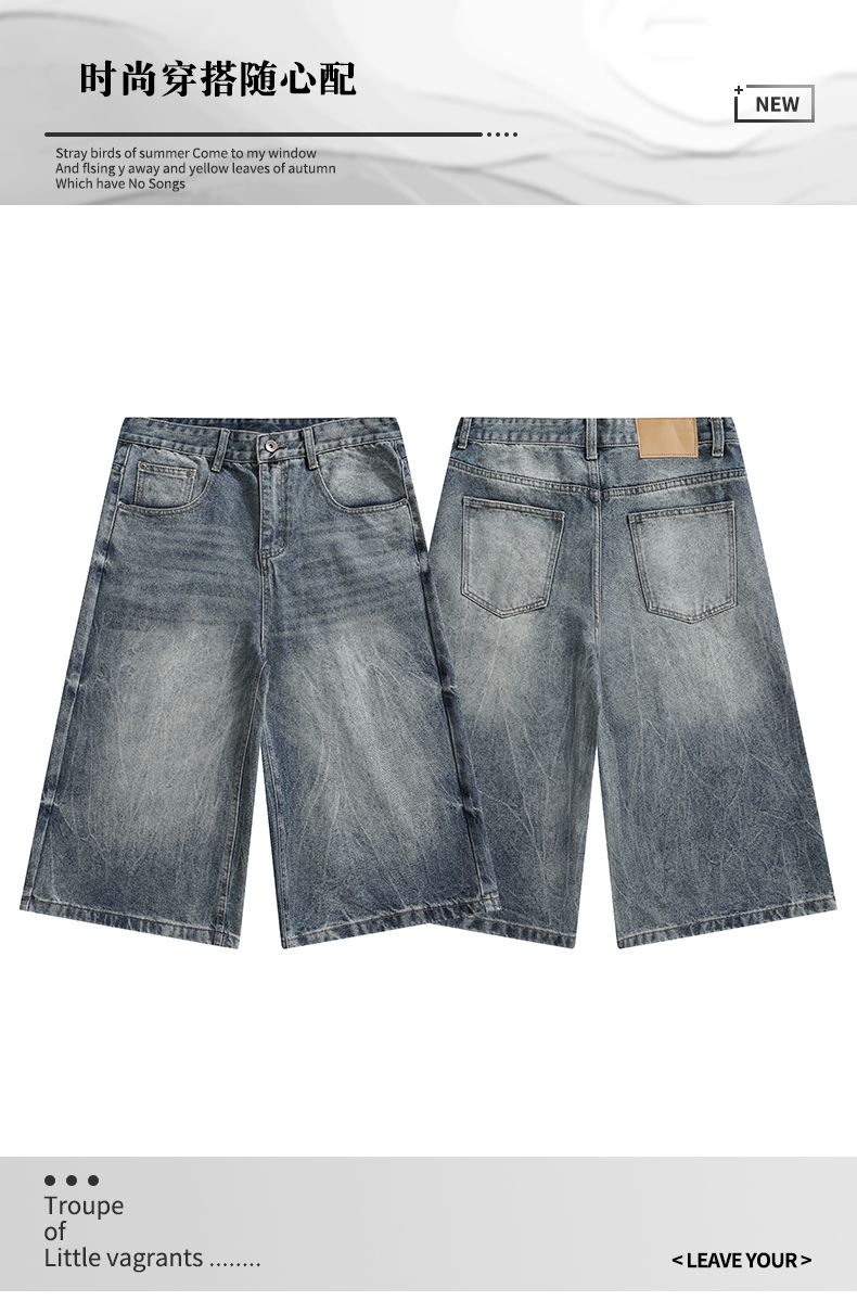 실사 2026 여름 새로운 한국 스타일 데님 바지 남자 루즈핏 스트레이트 워크웨어 팬츠 아메리칸 레트로 캐주얼 반바지