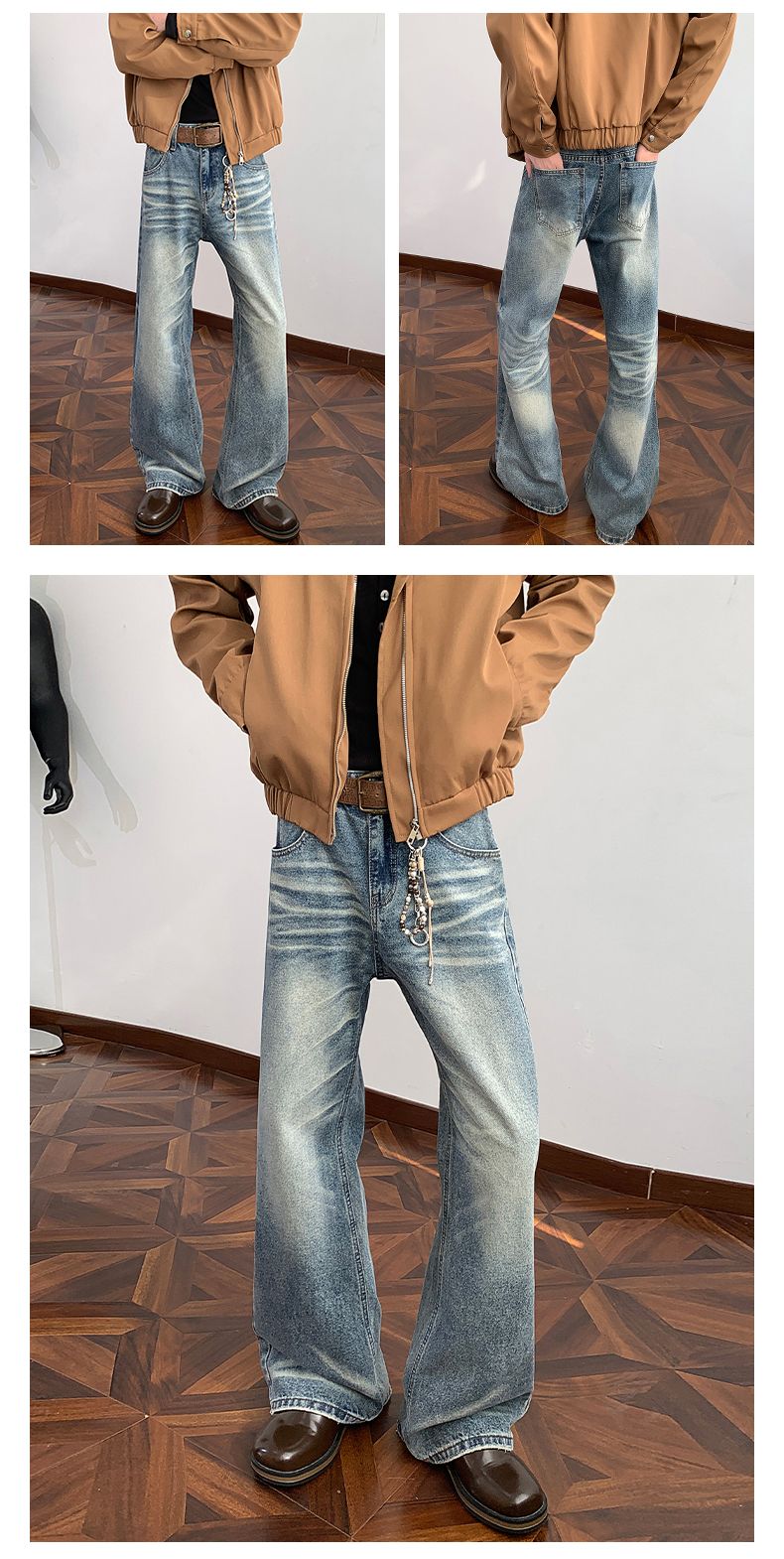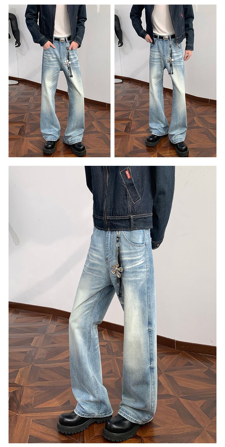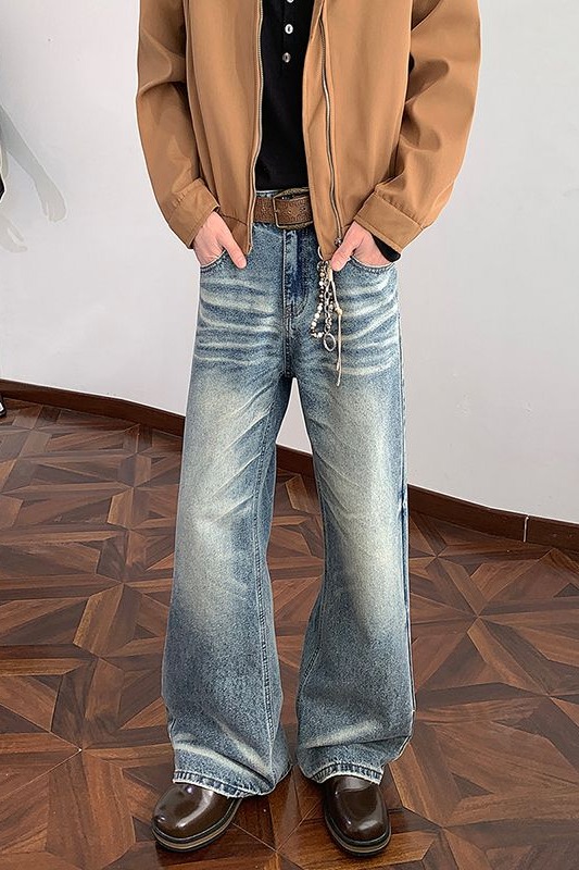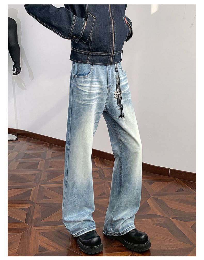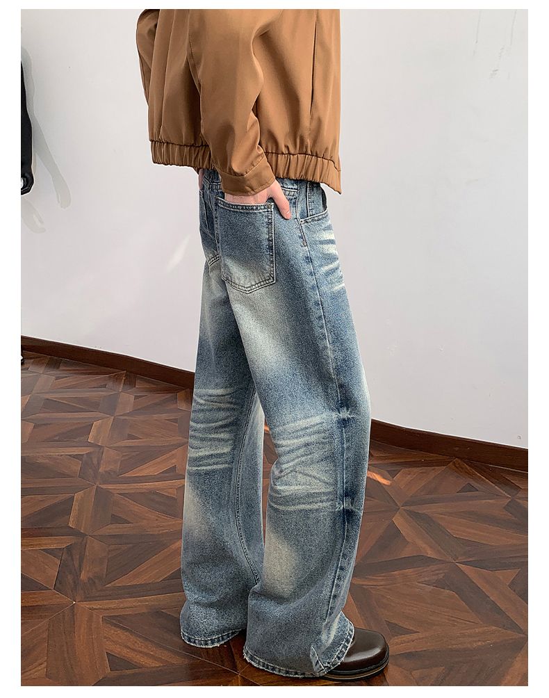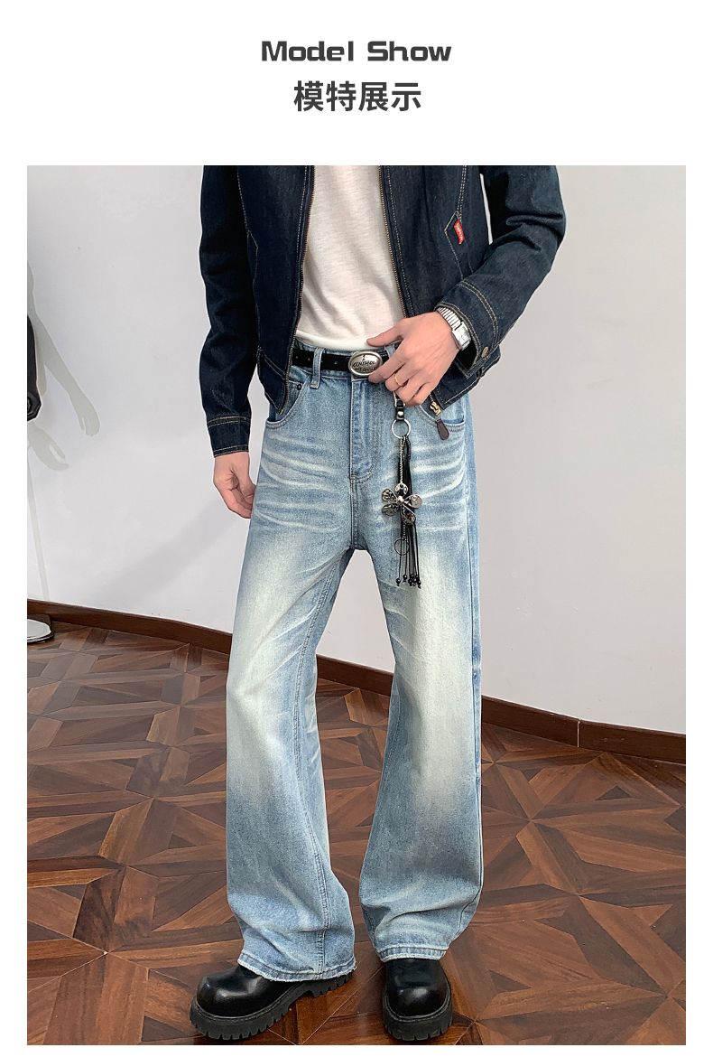 실사 2026 봄 새로운 무거운 아메리칸 워싱 2021m 핏 스타일 다용도 청바지 남녀 루즈핏 부츠컷