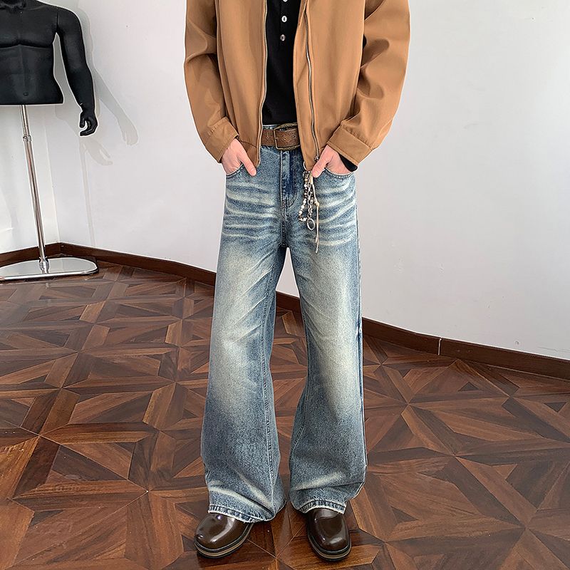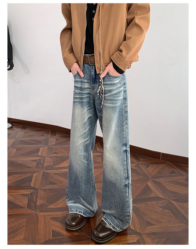 실사 2026 새로운 패션 트렌드 청바지 남자 아메리칸 레트로 펌프 로프 루즈핏 스트레이트 넓은 다리 트렌드 바지
