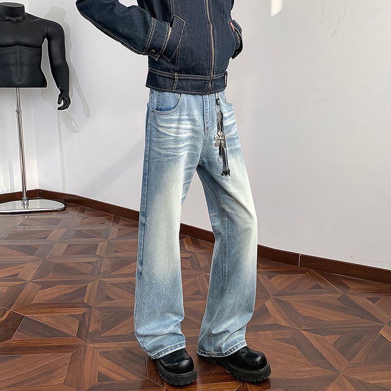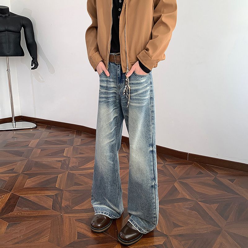 새로운 2026 봄 무거운 아메리칸 워싱 2021m 핏 스타일 다용도 청바지 남녀 루즈핏 부츠컷 긴 바지
