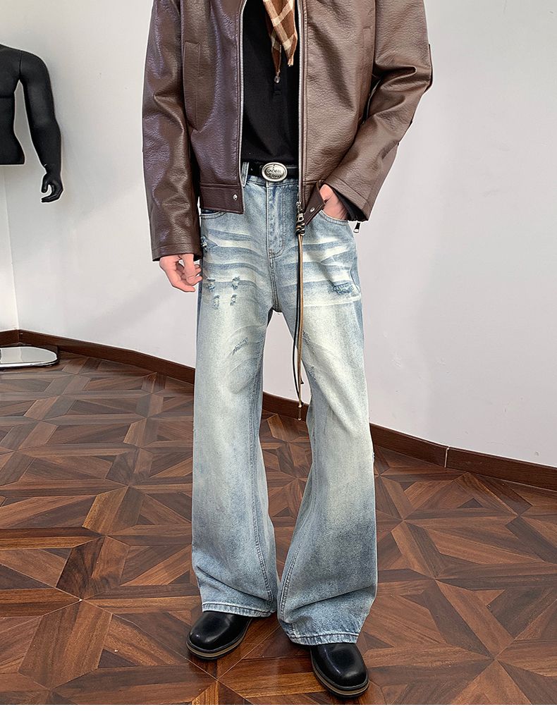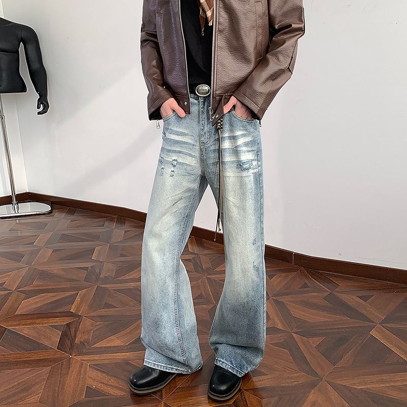 새로운 2026 봄 무거운 아메리칸 워싱 2021m 핏 스타일 다용도 청바지 남녀 루즈핏 부츠컷 바지
