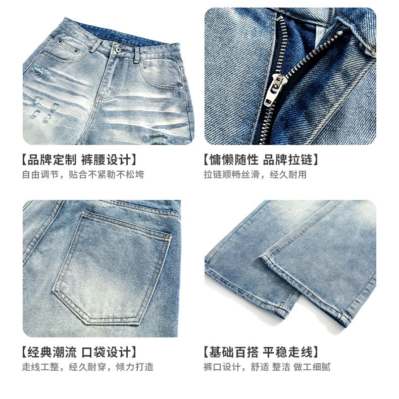 새로운 2026 파운드 아메리칸 워싱 2021m 핏 스타일 다용도 청바지 남녀 같은 단락 찢어진 부분 부츠컷 긴 바지