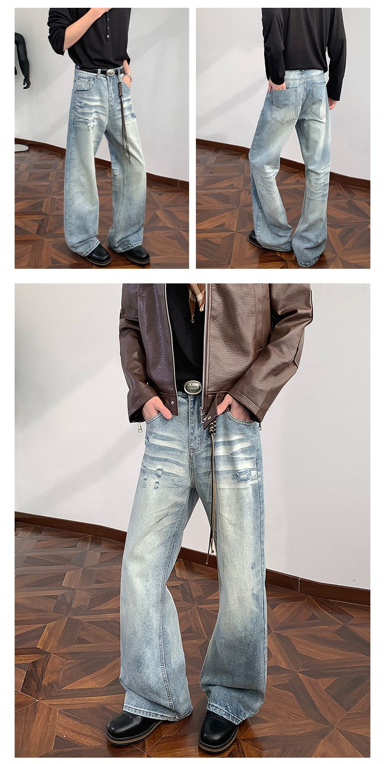 실사 2026 새로운 패션 트렌드 청바지 남자 아메리칸 레트로 펌프 로프 루즈핏 스트레이트 넓은 다리 트렌드 바지