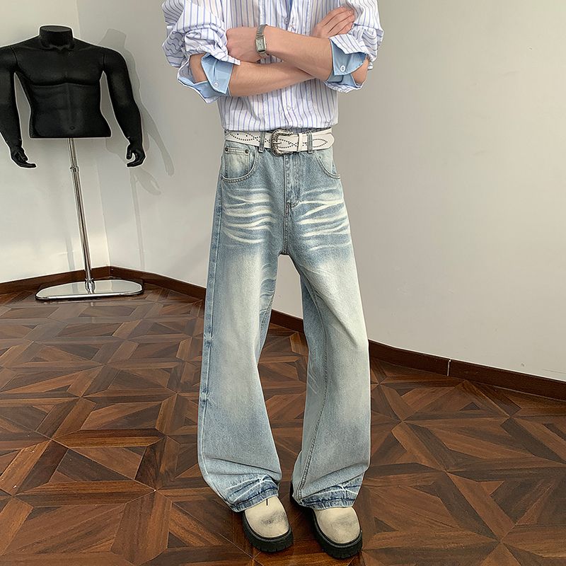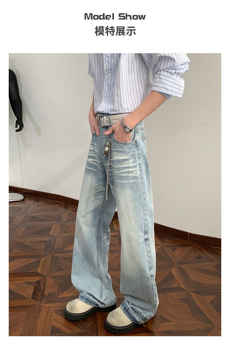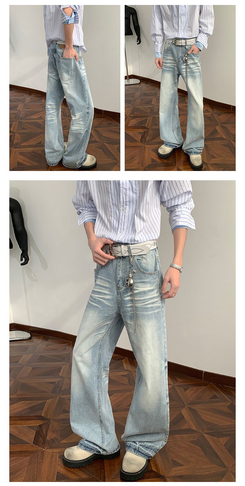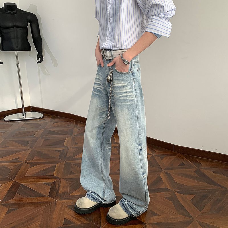 실사 2026 새로운 패션 트렌드 청바지 남자 아메리칸 레트로 펌프 로프 루즈핏 스트레이트 넓은 다리 트렌드 바지