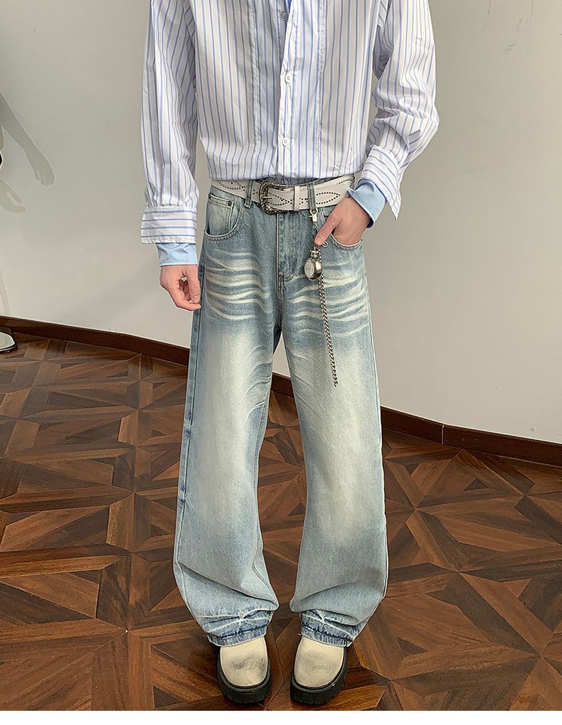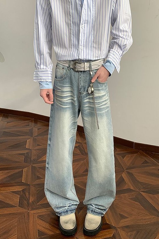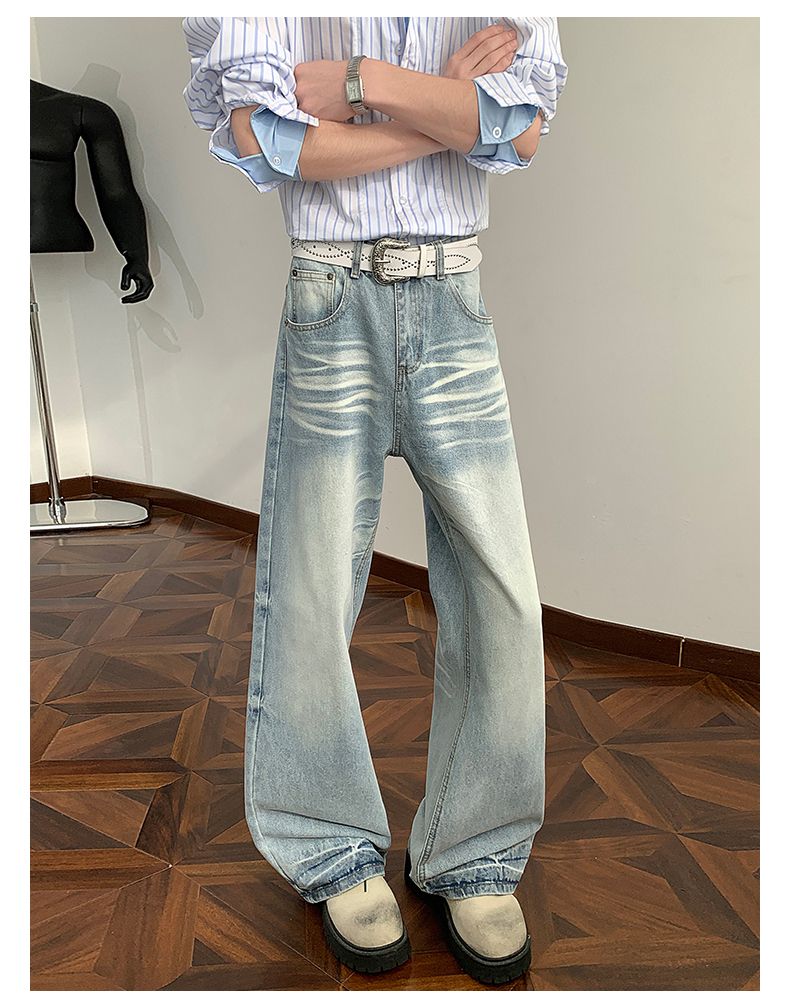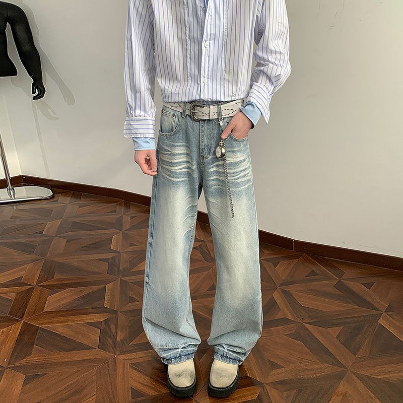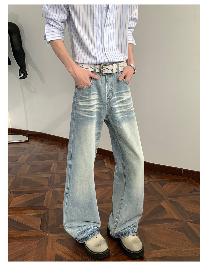 실사 2026 새로운 패션 트렌드 청바지 남자 아메리칸 레트로 펌프 로프 루즈핏 스트레이트 넓은 다리 트렌드 바지