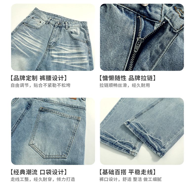 실사 2026 봄 새로운 무거운 아메리칸 워싱 2021m 핏 스타일 다용도 청바지 남녀 루즈핏 부츠컷