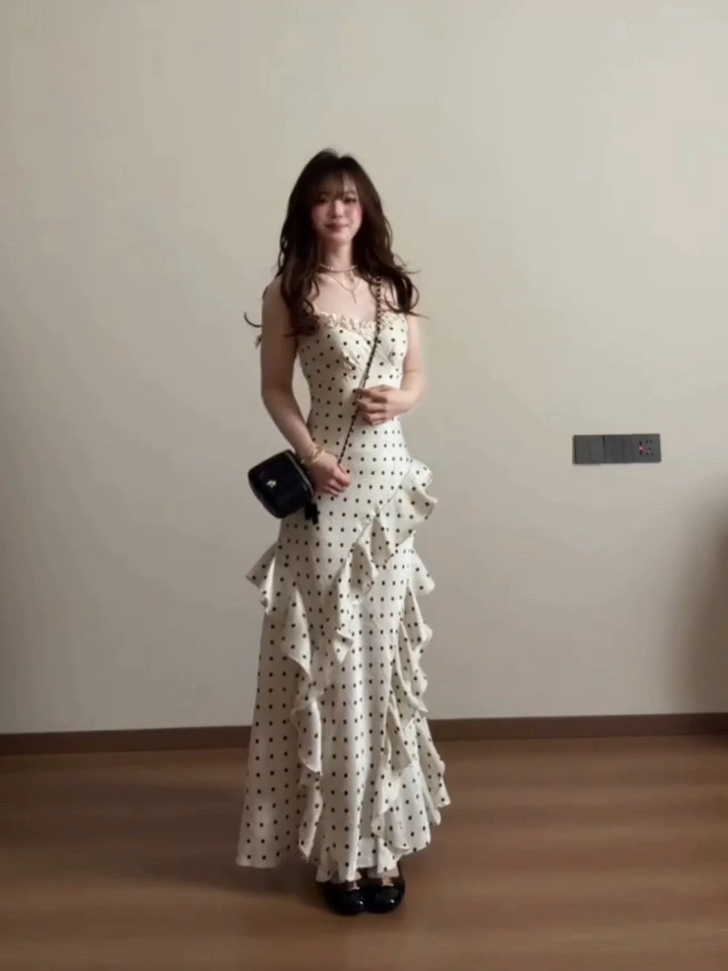 4 30 pm20 신제품 켜기 새로운 하나 달콤한 복숭아 yikett 도트 무늬 드레스