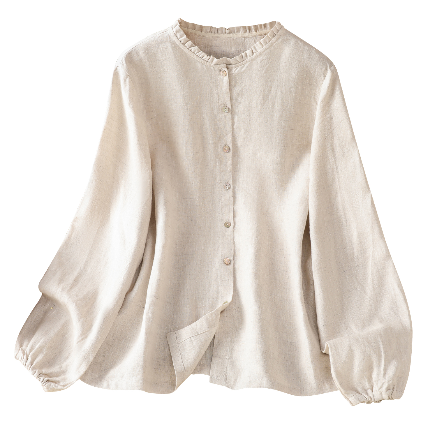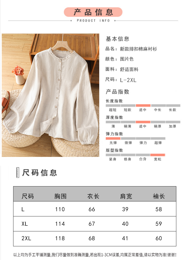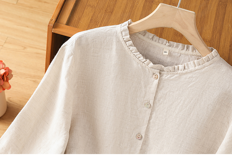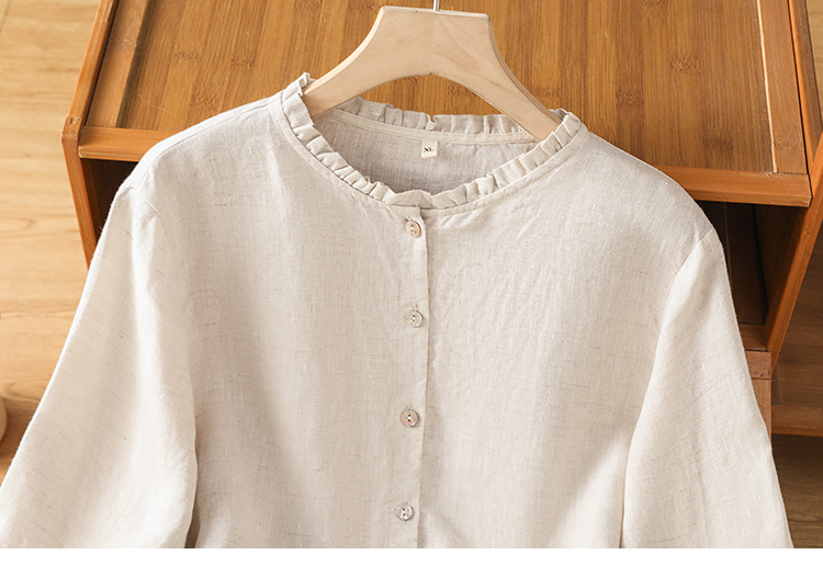 실사 2026 봄 새로운 면 린넨 긴팔 셔츠 프릴 칼라 문예 레트로 다용도 슬림해 보이는 품격 맨위 여성