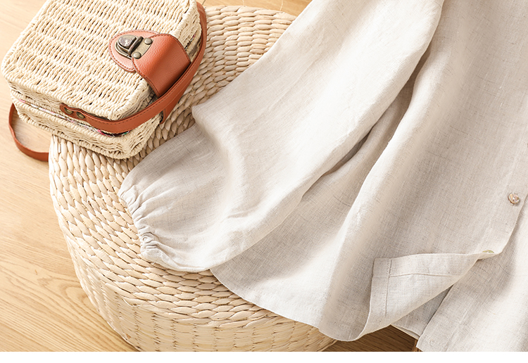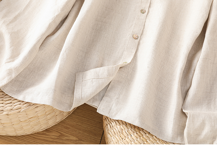 실사 2026 여름 새로운 아마 빅 사이즈 스탠드 칼라 7부 소매 루즈핏 태양 보호 셔츠 패션 연령 감소 여성 셔츠