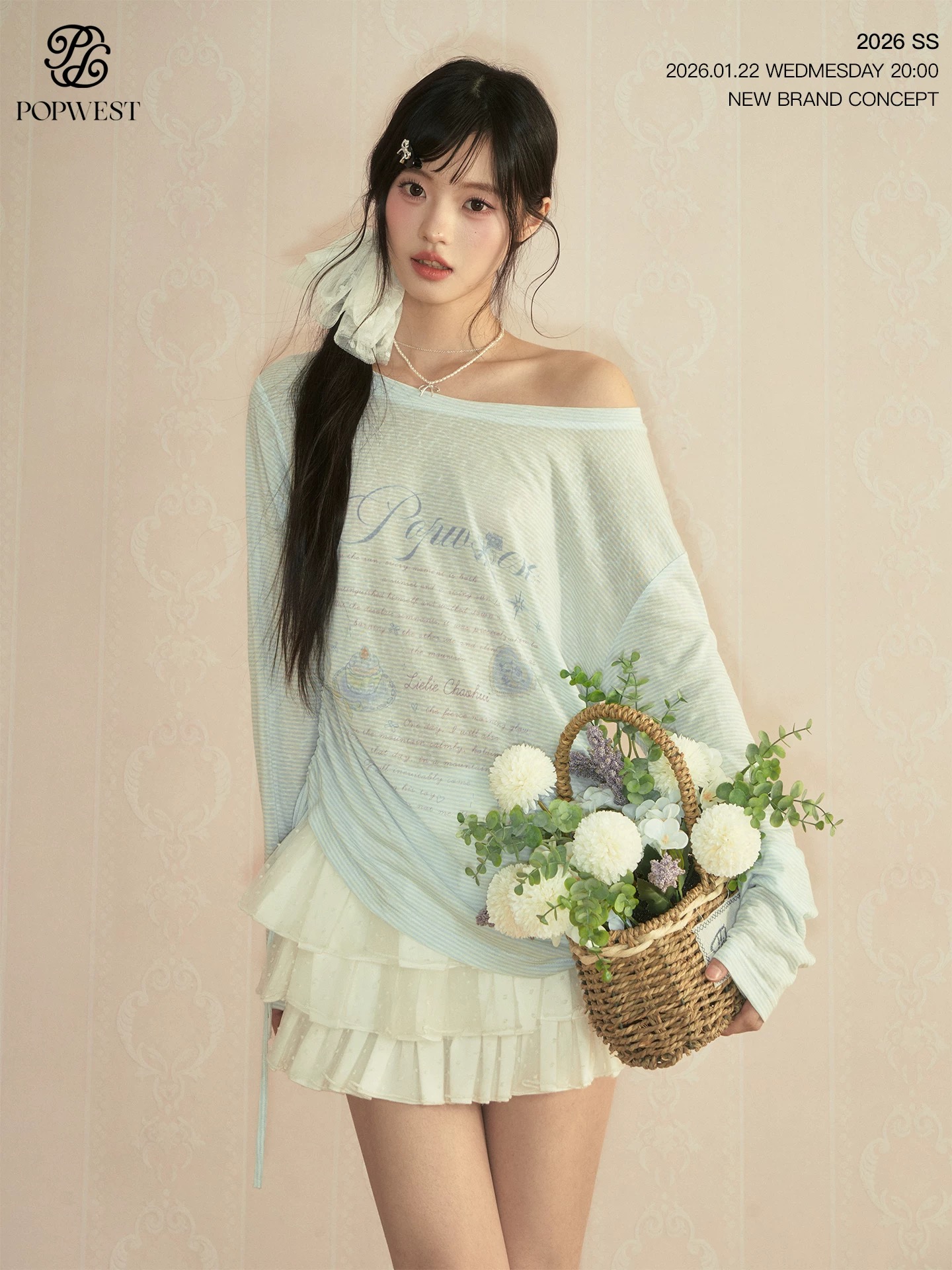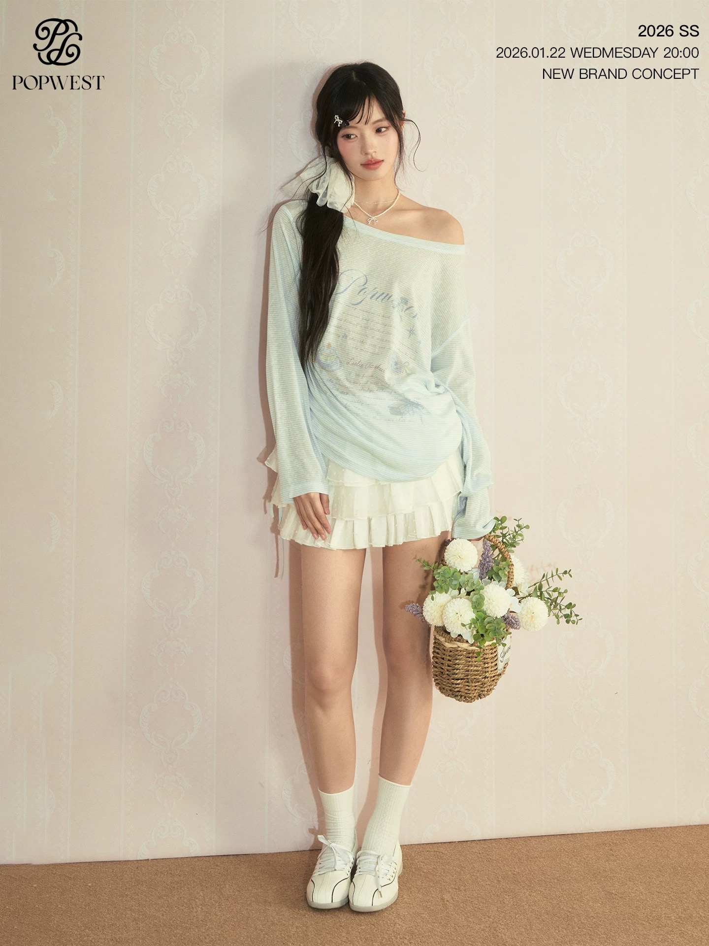 popwest 丨 낙서 비스듬한 어깨 티셔츠 자외선 차단 블라우스 여성 봄 얇은 스타일 루즈핏 긴팔 다용도 맨위