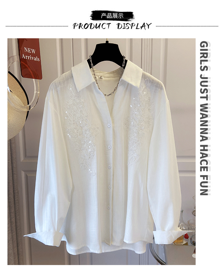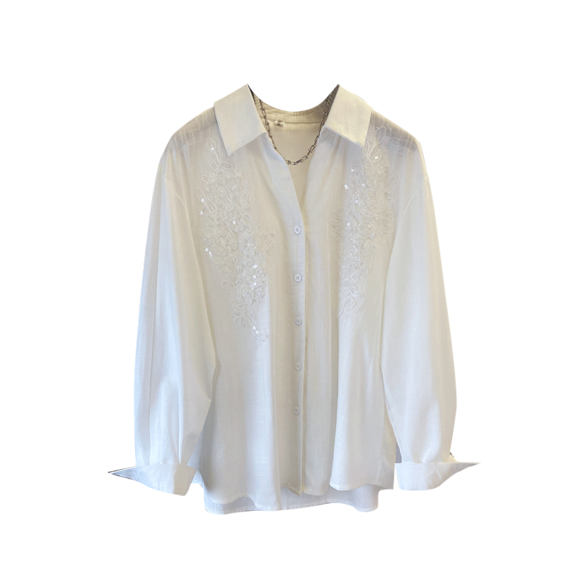 실사 프랑스식 연령 감소 외국 가스 비즈 박기 폴로 칼라 여성 셔츠 셔츠 루즈핏 레이스 조각 맨위