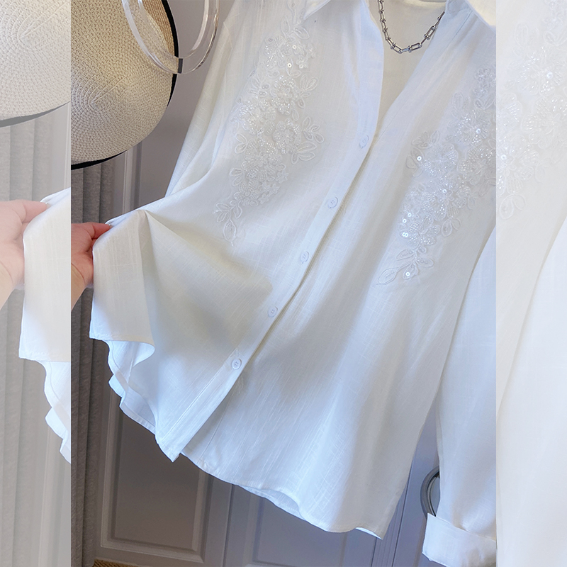 실사 오래된 돈 바람 자수 아마 조끼 여성 셔츠 외출용 프랑스식 작은 대중 맨위 얇고 가벼운 다용도 민소매 작은 셔츠