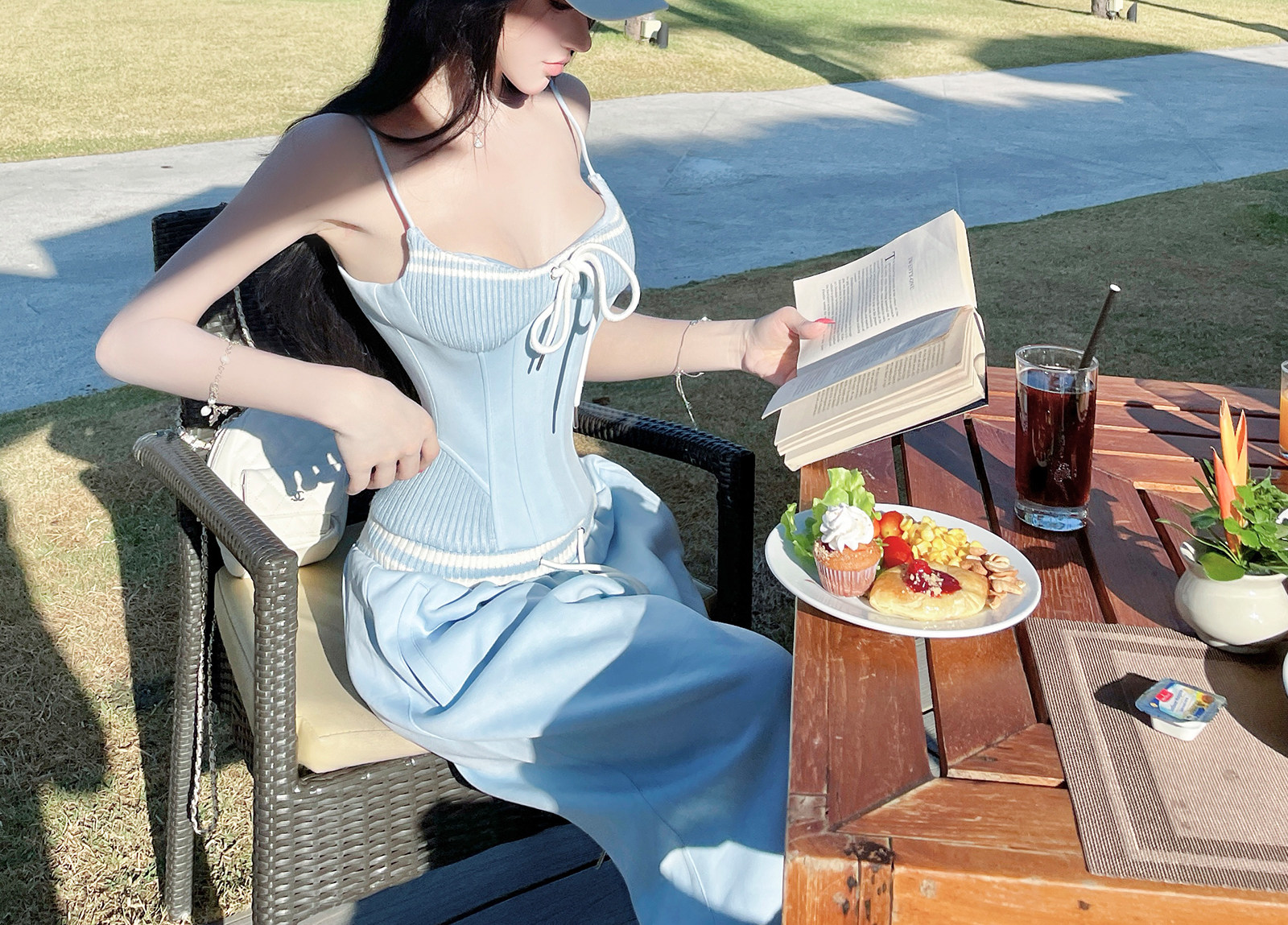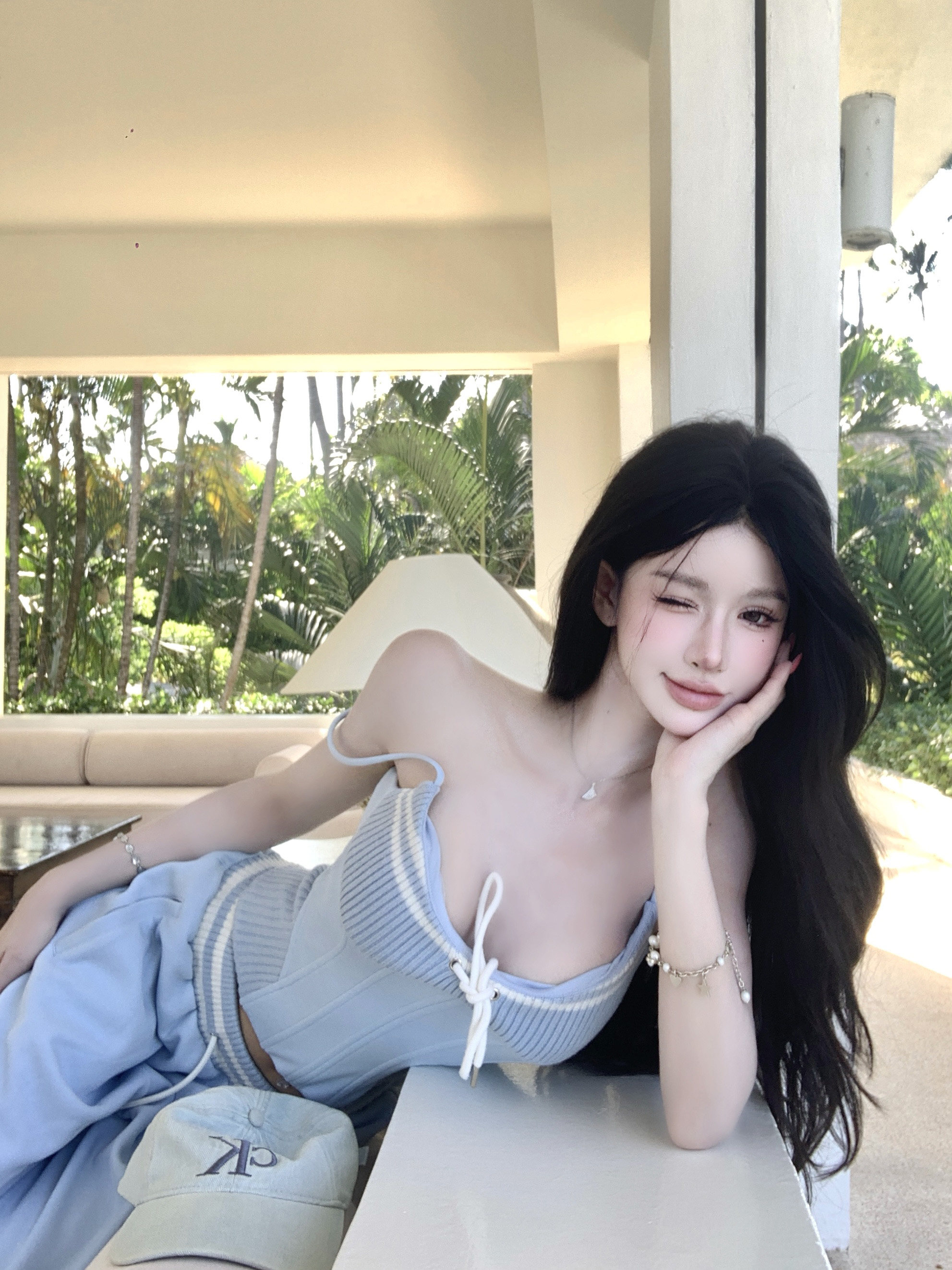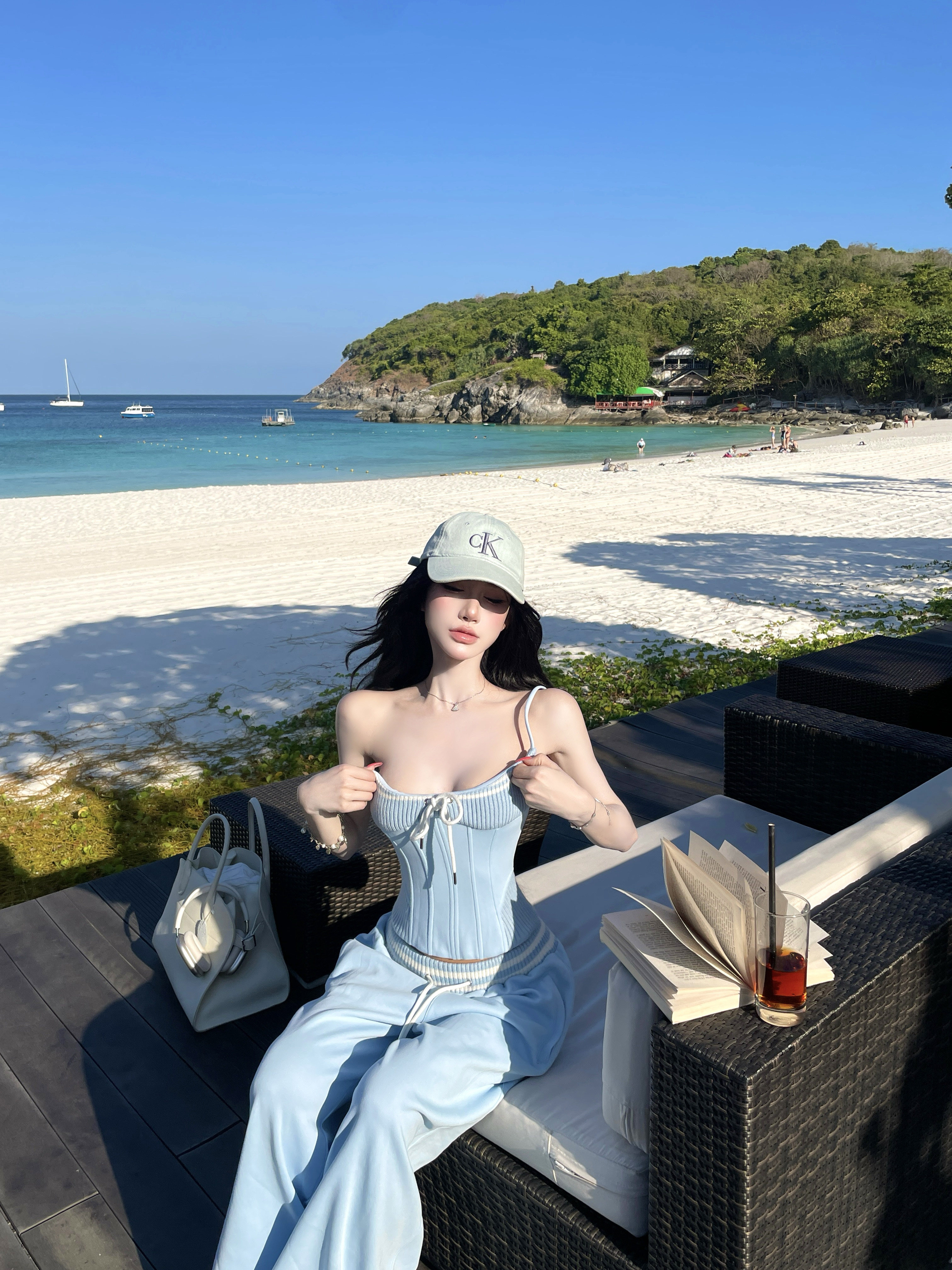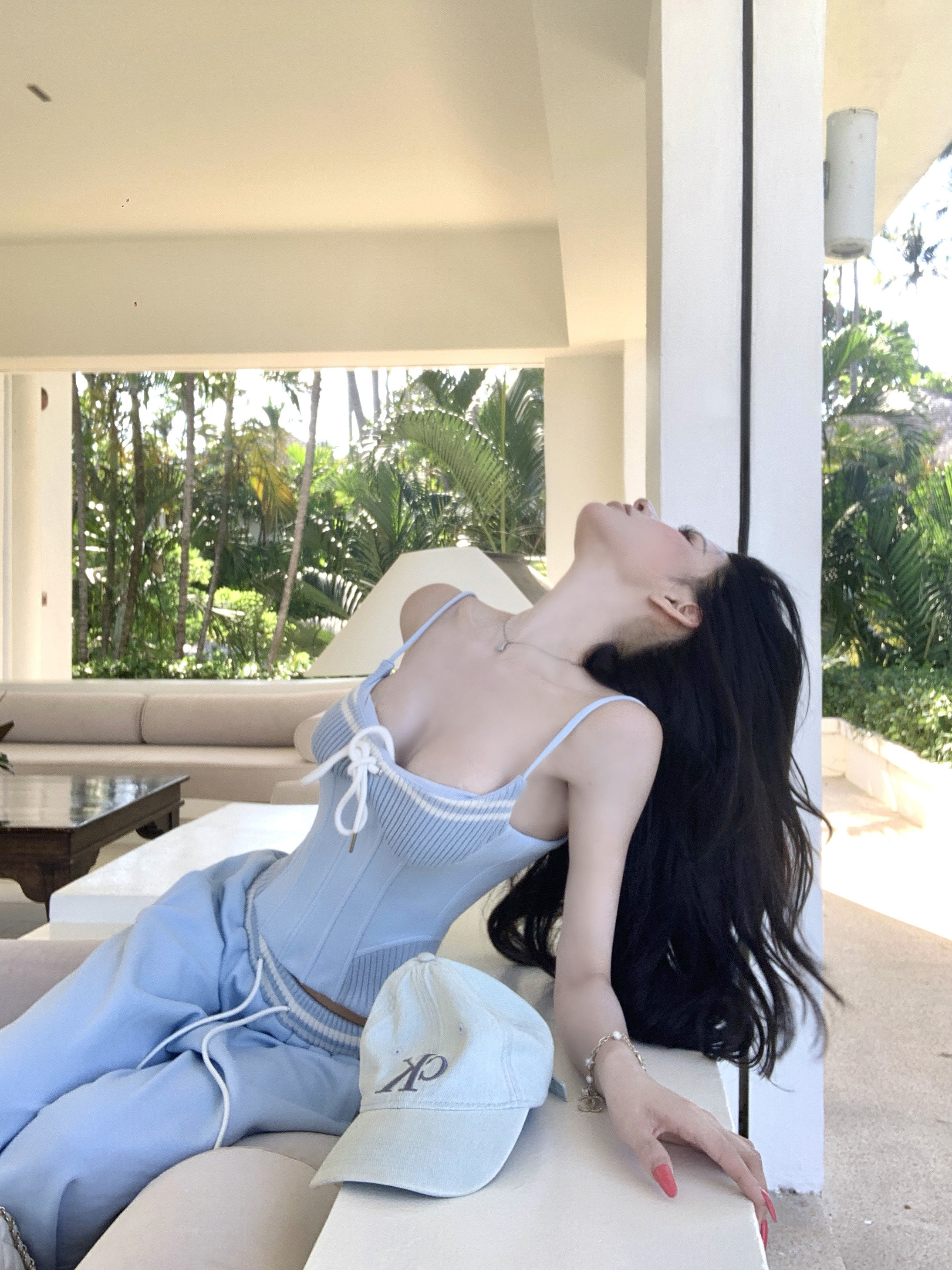 한 번 작은 짭짤한 휴가 바람 착용 가져 가라. 레이스 측면 캐미솔 세트 여성 2026 여름 루즈핏 와이드 레그 팬츠 투피스 세트