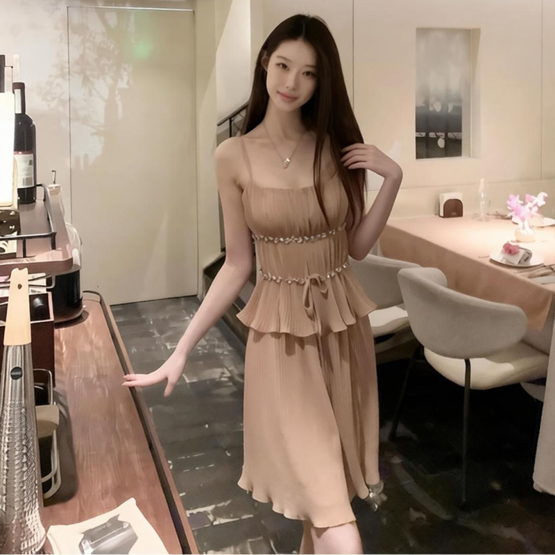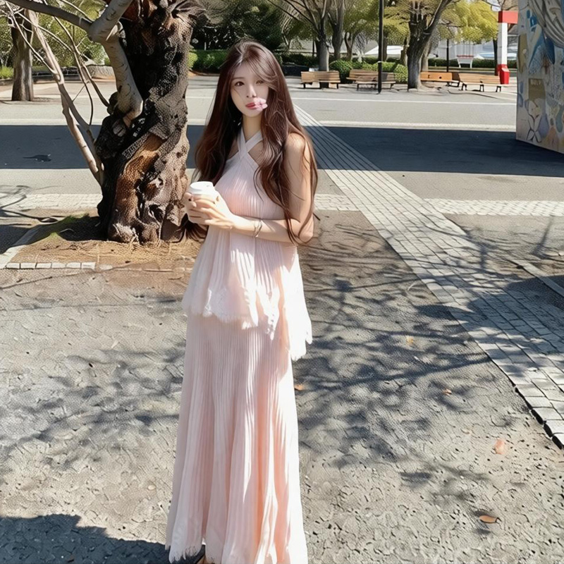 cloudsweet 흰 구름 달콤한 Breeze 향수 품격 행침 목 쉬폰 여성 드레스 플리츠 스커트 민소매 롱 스커트