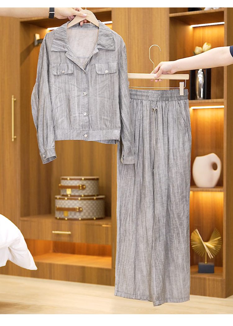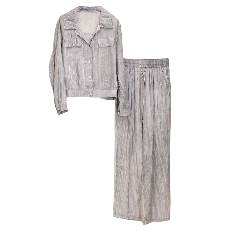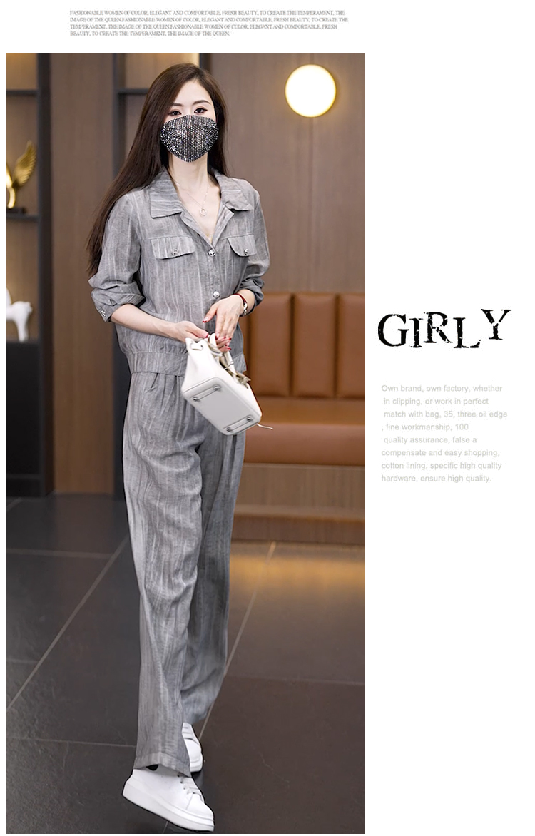 2026 여름 새로운 패션 캐주얼 다용도 지방 mm 미니멀리즘 슬림해 보이는 반팔 셔츠 스트레이트 와이드 레그 팬츠 투피스 세트