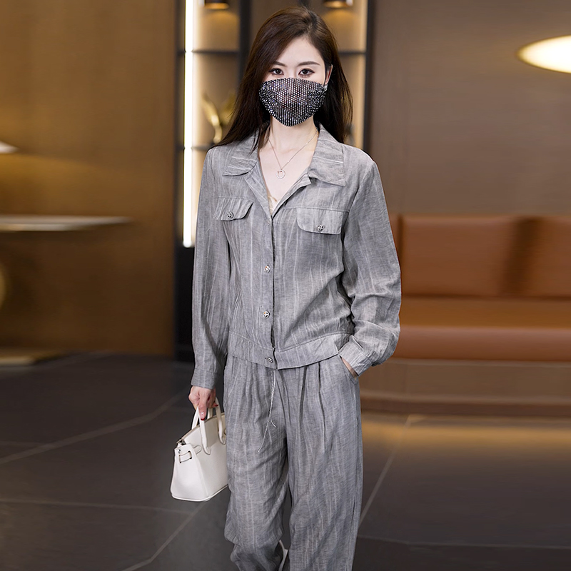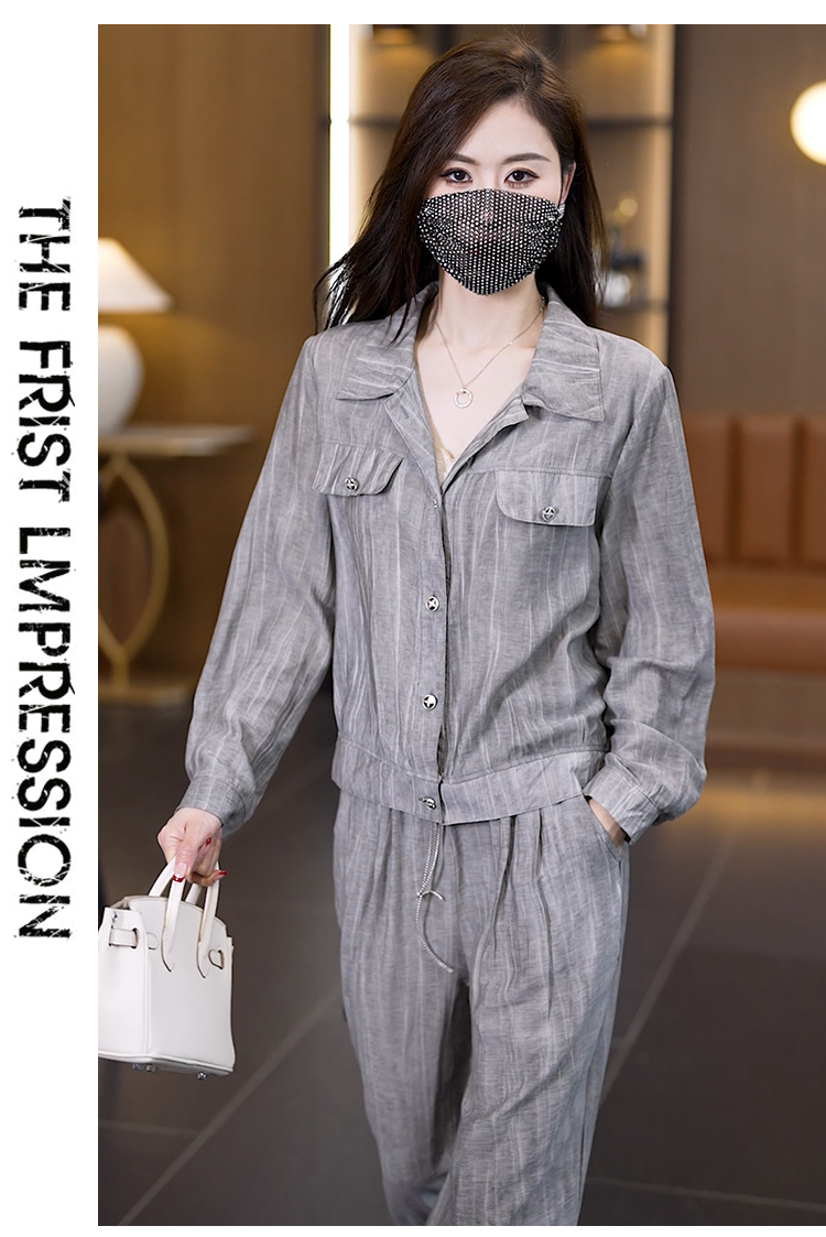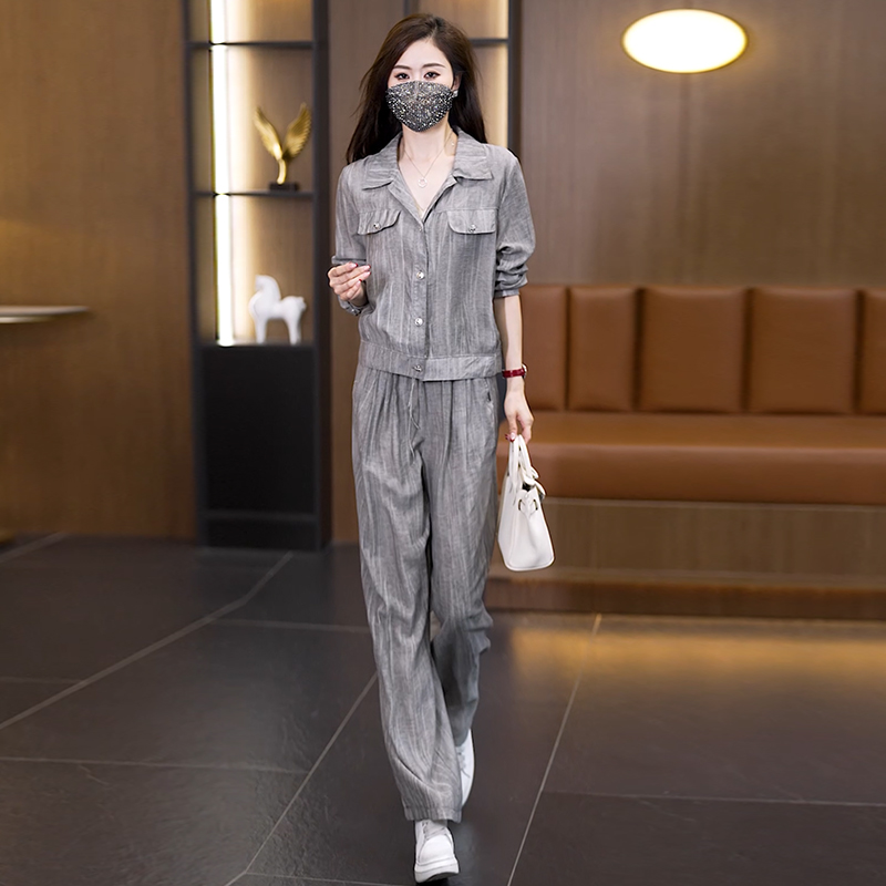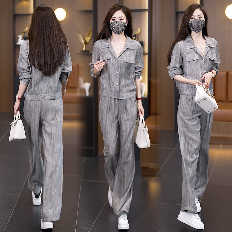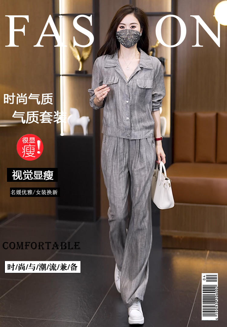 실사 2026 이른 가을 새로운 품격 다용도 빅 사이즈 세트 여성 루즈핏 스트레이트 팬츠 도루 센스 투피스 세트 트렌디