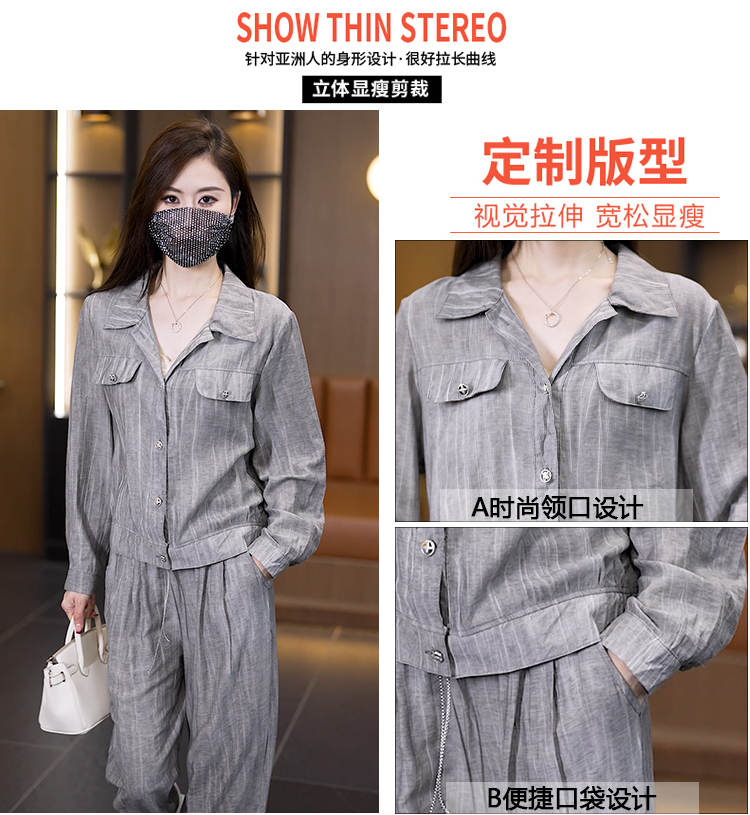 빅 사이즈 슬림해 보이는 긴팔 티셔츠 워크웨어 팬츠 두 조각 여성 세트 봄 가을 2026 새로운 패션 작은 키 세트