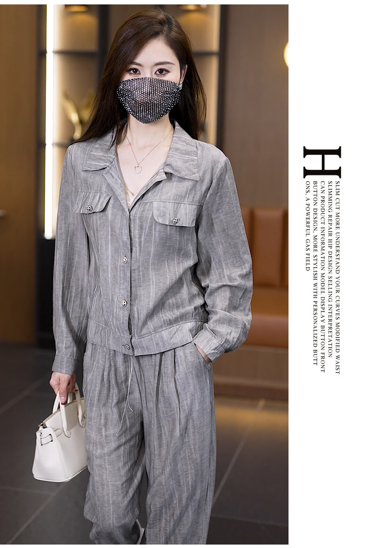 실사 정가 새로운 레이스업 디자인 센스 스트라이프 인형 셔츠 이슬 생각하기 같은 단락 슬림해 보이는 마이크로 나팔 와이드 레그 팬츠