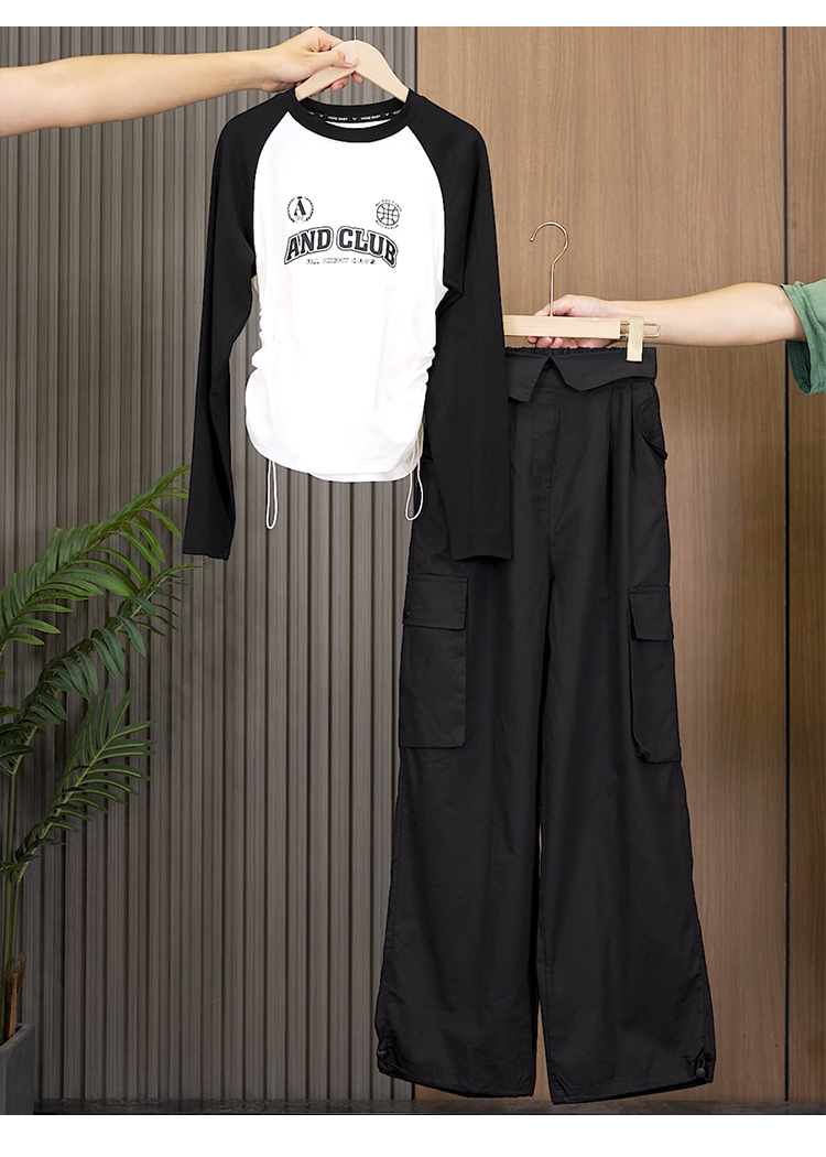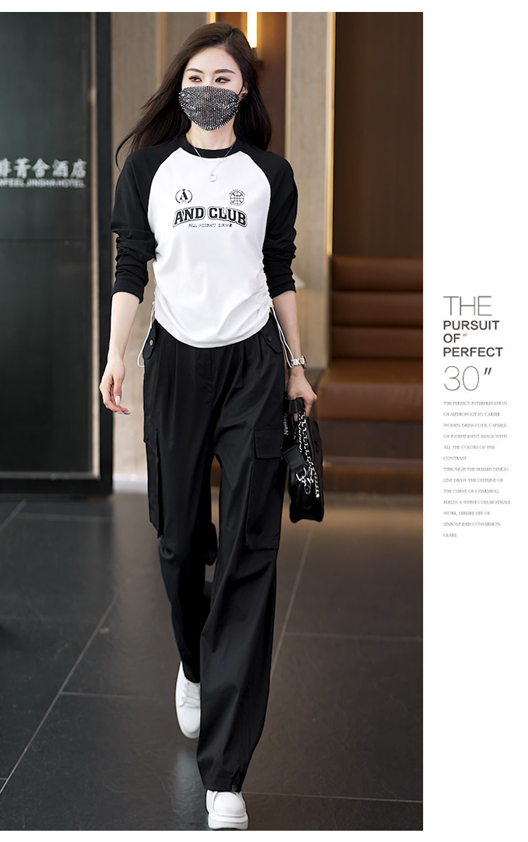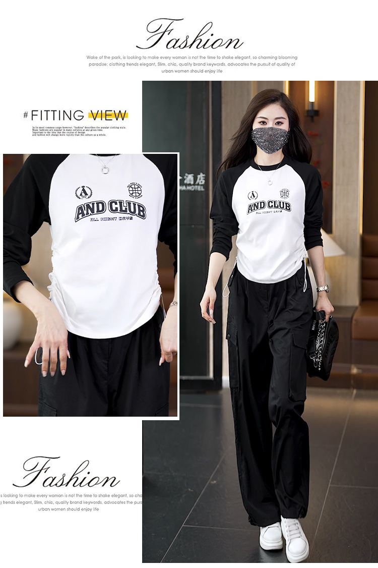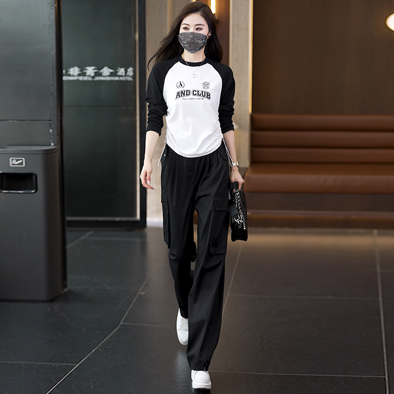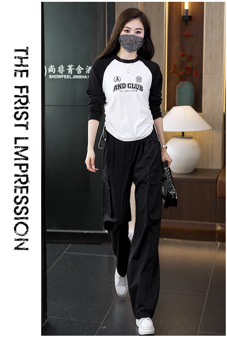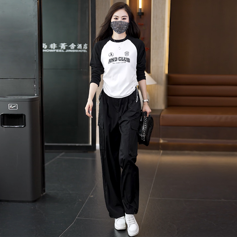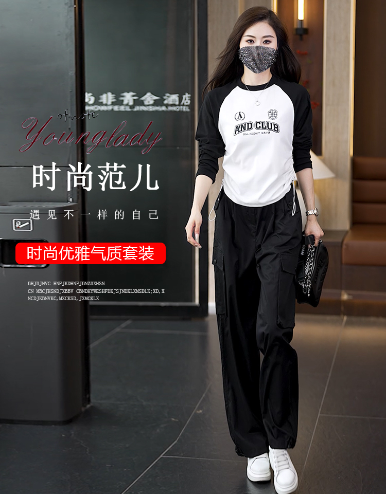 빅 사이즈 슬림해 보이는 긴팔 티셔츠 워크웨어 팬츠 두 조각 여성 세트 봄 가을 2026 새로운 패션 작은 키 세트