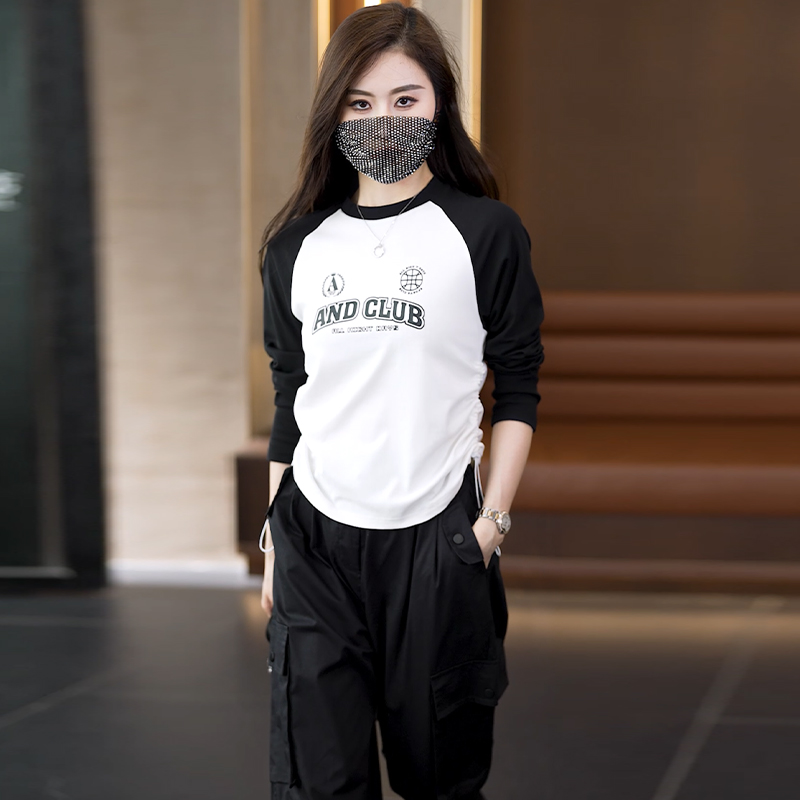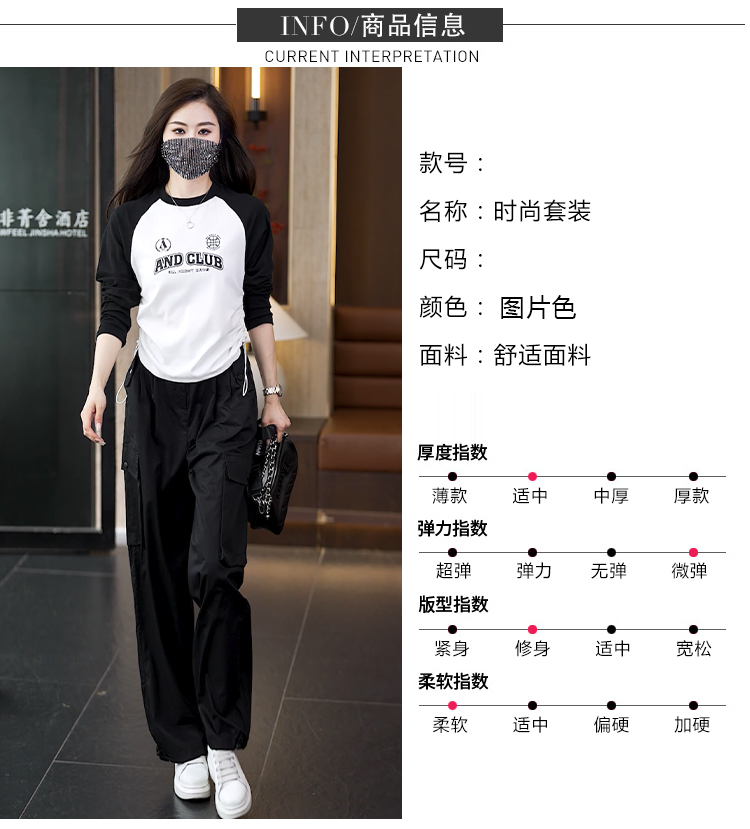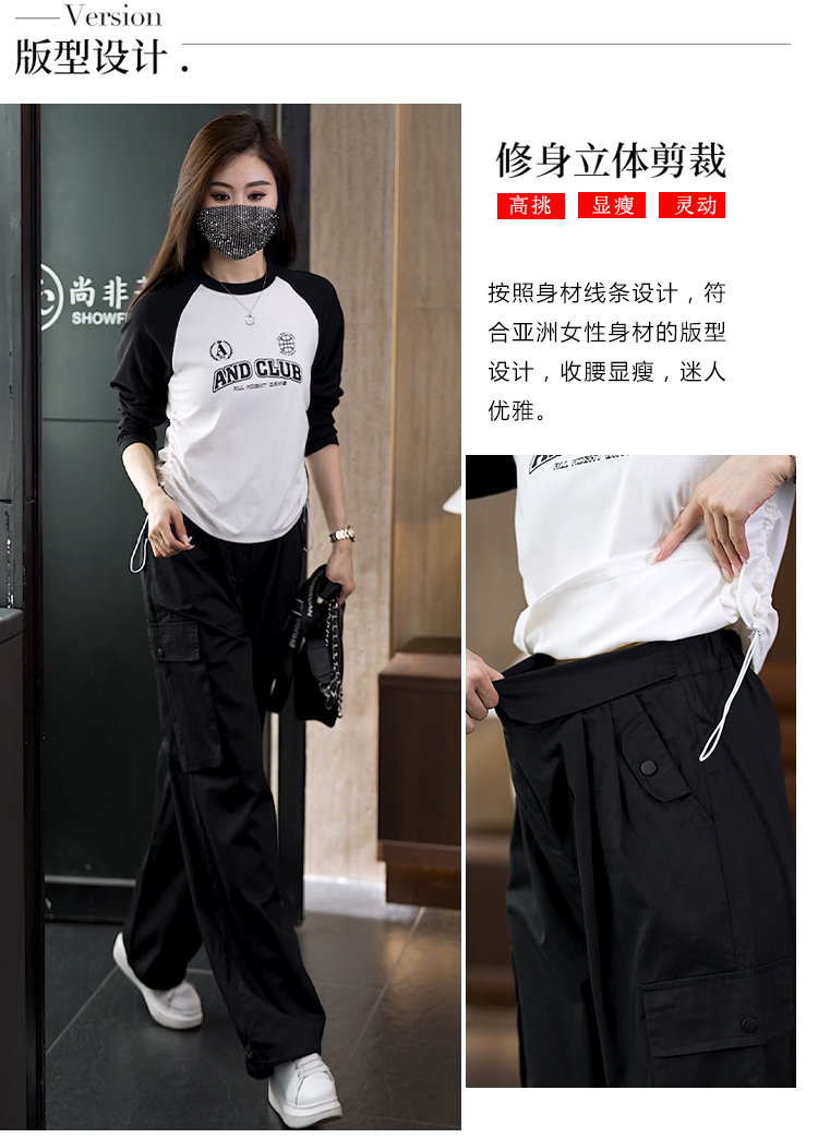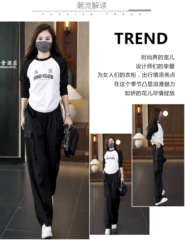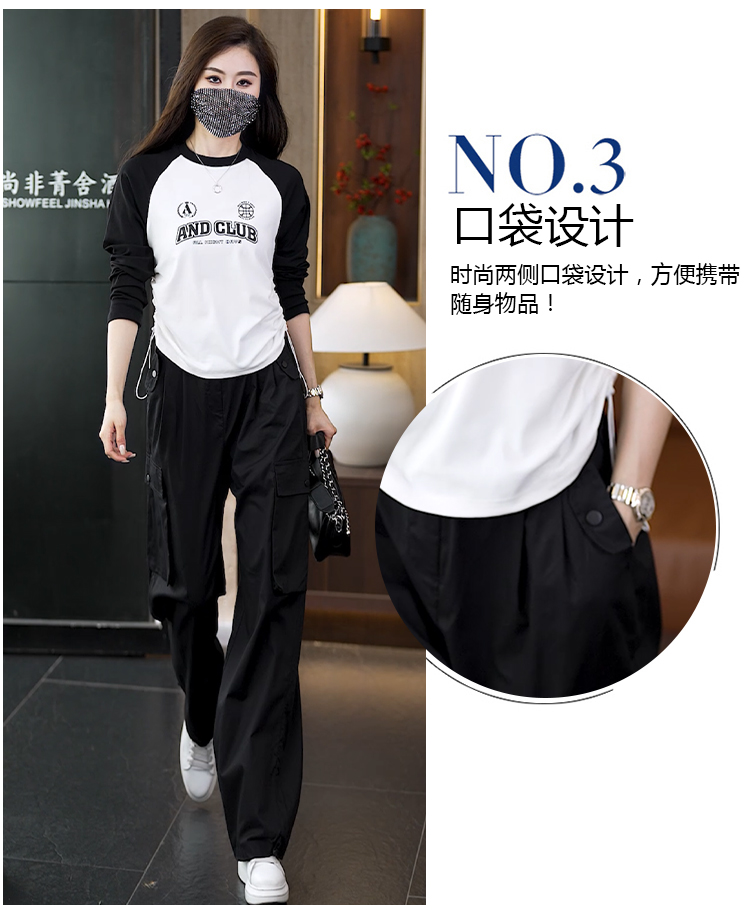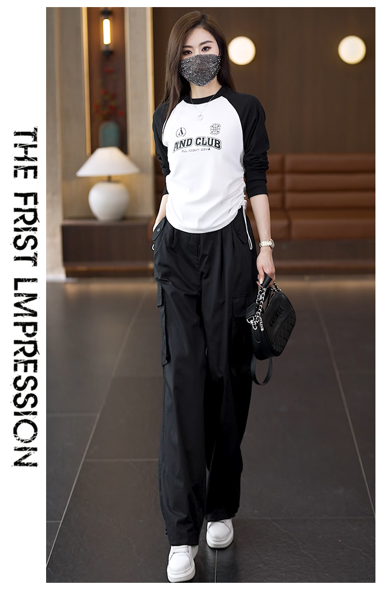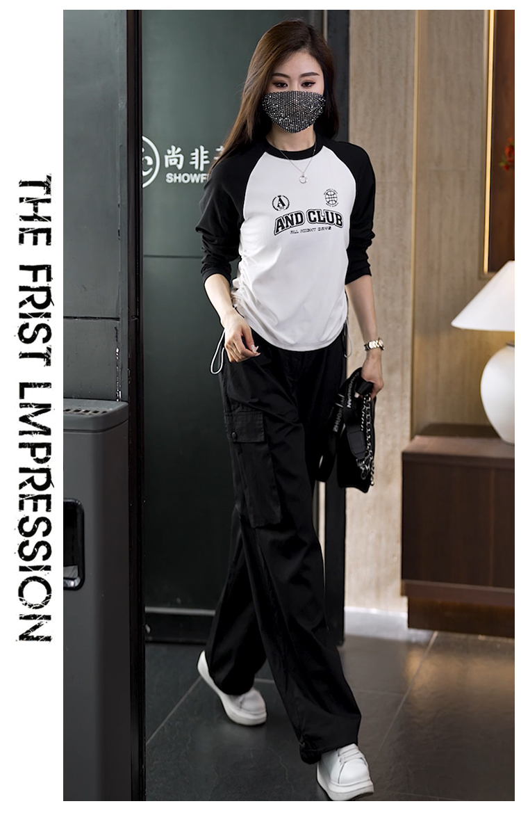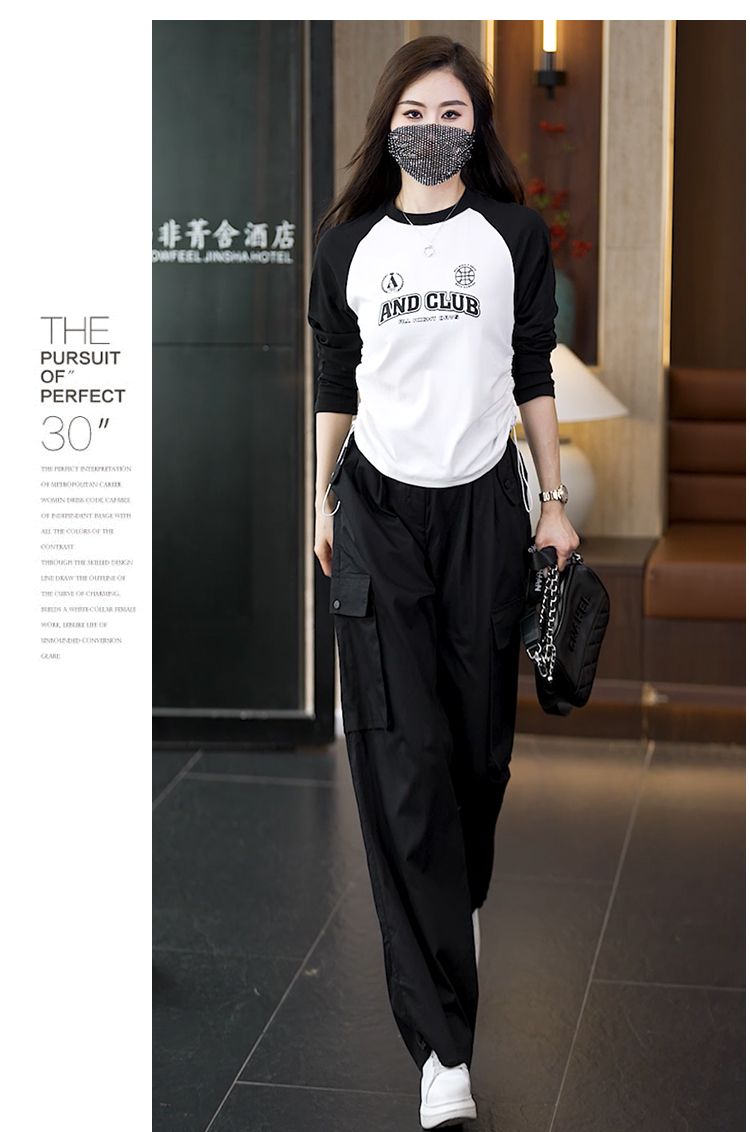 빅 사이즈 슬림해 보이는 긴팔 티셔츠 워크웨어 팬츠 두 조각 여성 세트 봄 가을 2026 새로운 패션 작은 키 세트